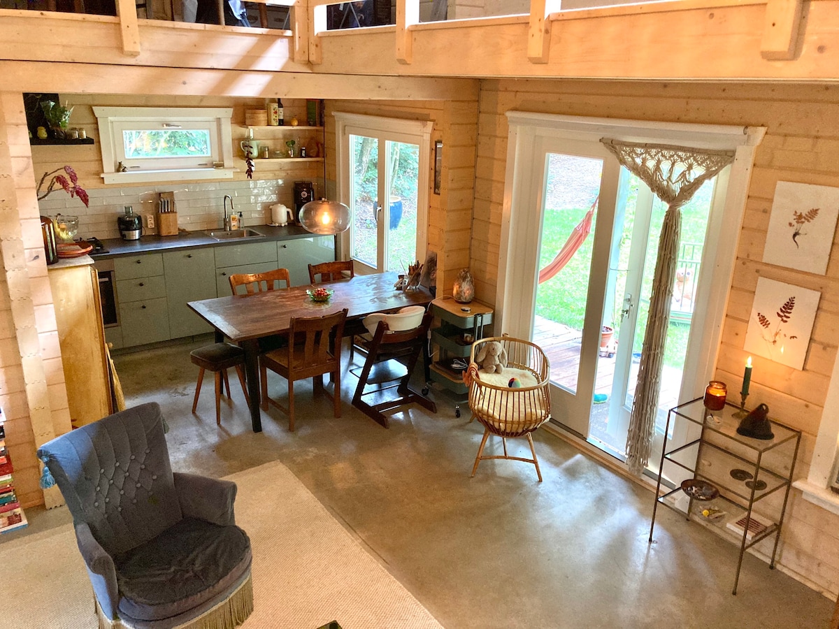 Stiúideo ag imeall na foraoise, lena n - áirítear bricfeasta agus aerchóiriú