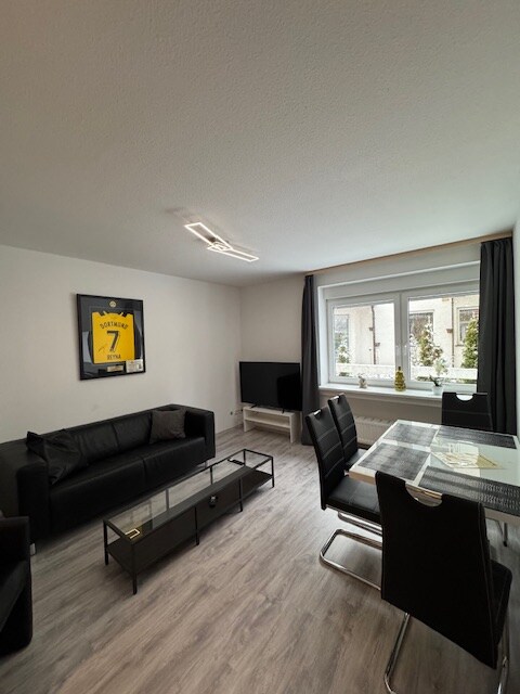 Árasán ísealurláir beag! Ach faoi throscán grámhar in Dortmund-West. Lárnach ach ciúin i lonnaíocht bheag fho-uirbeach. Fad siúil chuig an Ollscoil Theicniúil u.DASA (10 nóiméad). Tá Páirc Signal Iduna (staidiam peile) agus Westfalenhalle inrochtana go héasca de shiúl na gcos nó ar iompar poiblí. Is féidir an príomhstáisiún traenach a bhaint amach trí S-Bahn tar éis 2 stáisiún. Tá stáisiún S - Bahn (traein fo - uirbeach) Dorstfeld Süd siúlóid 2 nóiméad ar shiúl. Siopadóireacht (LIDL & Bakery), bialanna, tithe tábhairne in aice láimhe