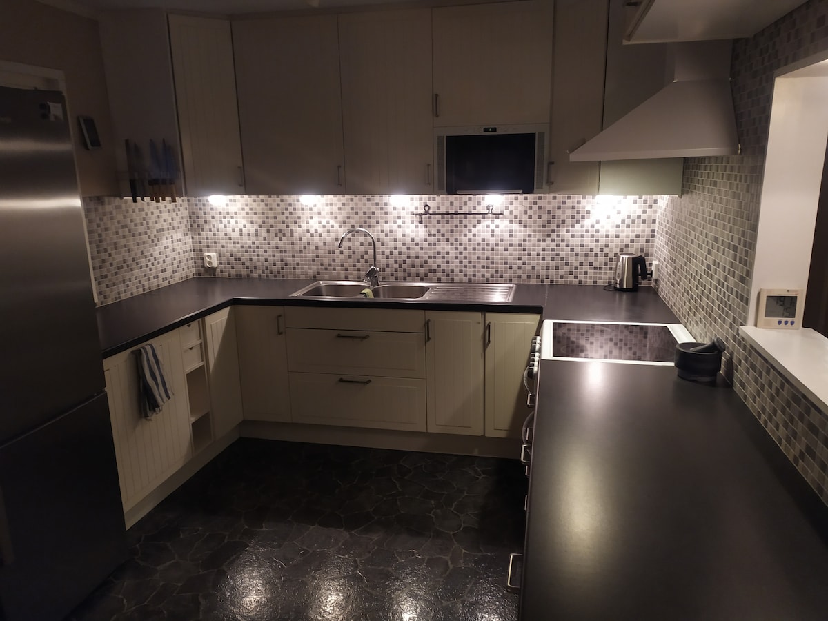 Níl ach 10 nóiméad ar shiúl ó Skellefteå ná ár dteachín aíochta atá geal, aerach agus mealltach! Tá fáilte roimh mhadra ach ní cat mar gheall ar ailléirge. Tá fuinneoga móra ag an teachín ar na bacáin agus tá sé maisithe leis an méid a theastaíonn uait. Anseo a chodlaíonn tú i leaba thoilg atá 140 cm ar leithead, ar thocht tiubh earraigh. Uaidh sin tá radharc agat freisin ar an gcé óna dtéann aíonna cróga ag snámh de ghnáth. Teastaíonn seomra leapa ar leith uait, mar sin cuir ceist! An chuid is mó den am is féidir linn é a shocrú! Tá sé béal dorais le leaba 160 cm ar leithead.