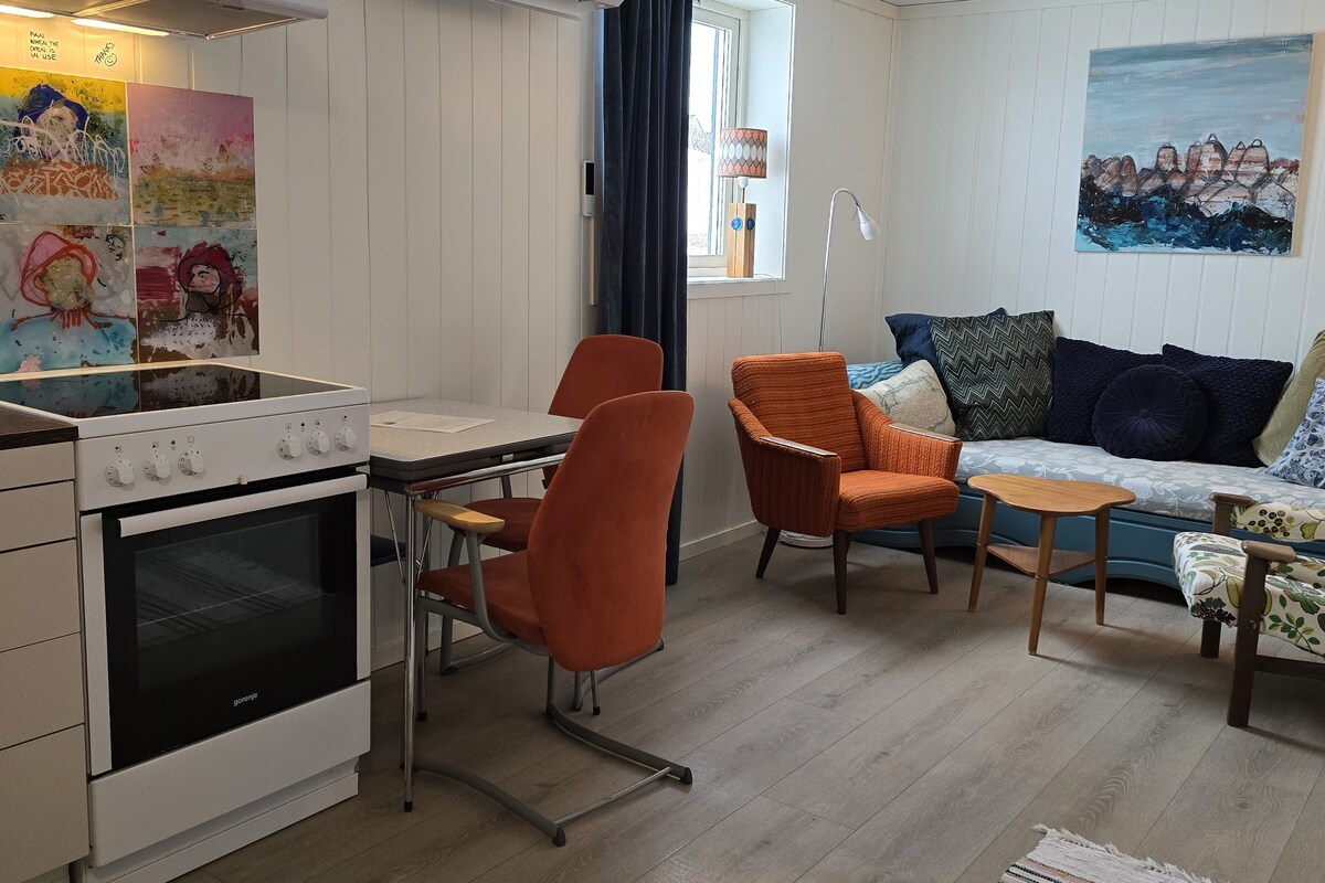 Fáilte chuig ár n - árasáin nua - aimseartha le radharc iontach ar an bhfarraige! Tá dhá sheomra leapa fairsinge agus seomra suí mór i ngach ceann dár dhá árasán, a chuireann go leor spáis ar fáil duit féin agus do do mhuintir chun do scíth a ligean agus taitneamh a bhaint as d'fhanacht. Agus a shuíomh iontach ag breathnú amach ar an bhfarraige, is iad ár n - árasáin an bonn foirfe chun áilleacht an Arctic.pace a iniúchadh.
