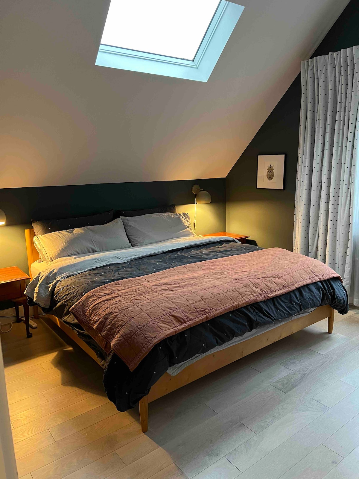 Bright, ciúin, an dara hurlár, árasán seomra leapa amháin i 150 bl. teach d'aois. Féach ar an ngairdín, leaba rí, cistin iomlán, agus seomra folctha mór. Bealach isteach comhroinnte isteach sa teach, bealach isteach príobháideach isteach san árasán, spás páirceála sráide amháin agus siúlóid shábháilte 5 go 7 nóiméad chuig ár gcroílár bríomhar. Ní mór a bheith in ann staighre a shocrú mar go bhfuil an t - árasán ar an dara hurlár. Fanacht 2 oíche ar a laghad agus fanacht 10 lá ar a mhéad Ní cheadaítear peataí, le do thoil.