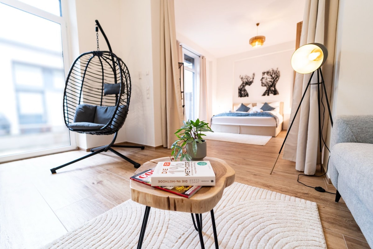 Faigh blaiseadh den chuid is fearr de Koblenz inár lochta galánta atá suite go lárnach. Lig do scíth sa limistéar fairsing maireachtála le tolg Chesterfield Bíodh spraoi agat ag imirt peile boird. Cócaráil sa chistin mhór lánfheistithe agus bailigh le chéile timpeall an bhoird itheacháin le haghaidh béile dodhearmadta. Foirfe do theaghlaigh nó do ghrúpa cairde, cuireann an spás seo meascán de chompord nua - aimseartha agus de dhraíocht chlasaiceach ar fáil.