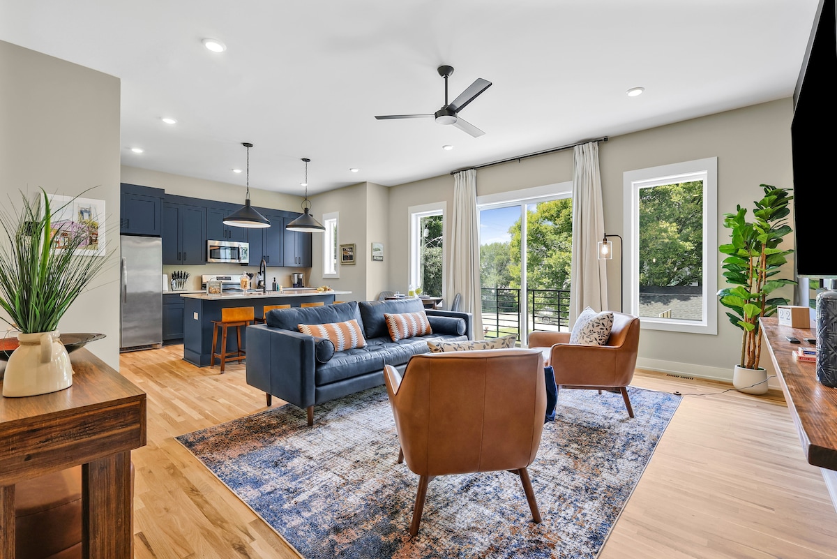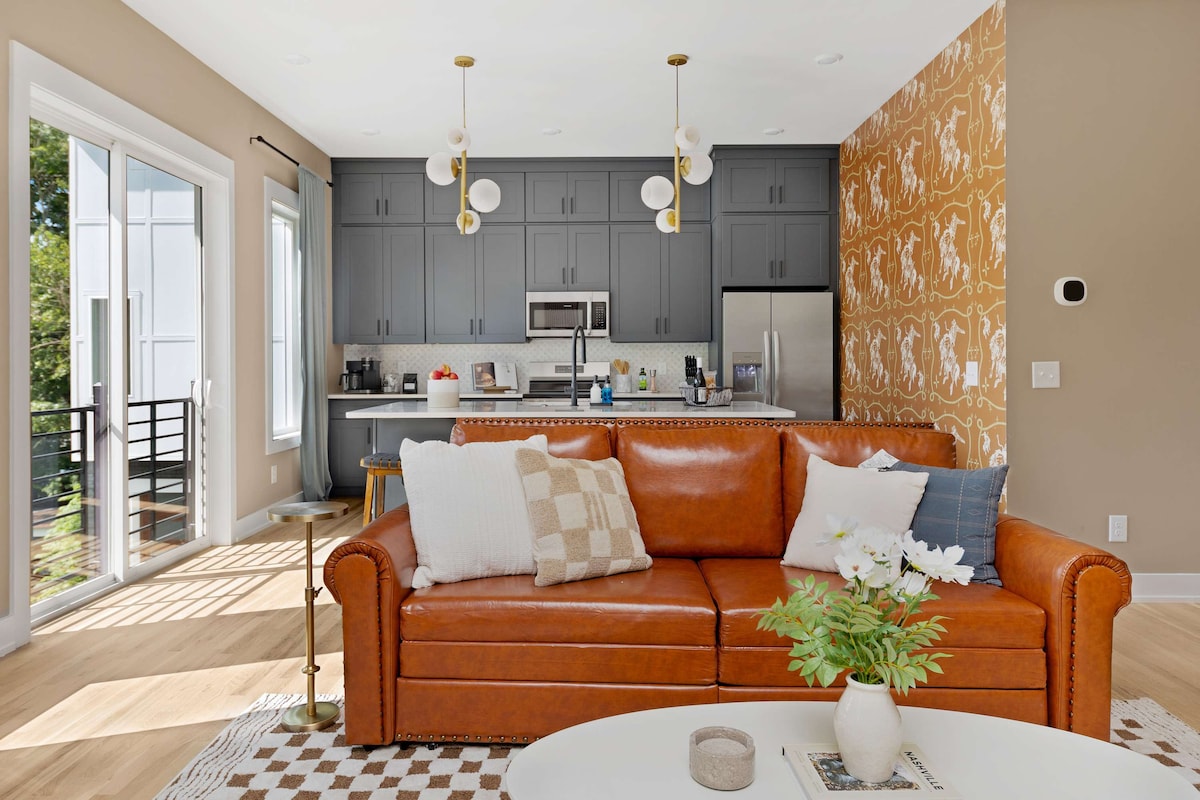 Fan ag Lonestar, stiúideo buachaill bó chic in Melrose / 8th Ave South—achar 2.5 míle ó Downtown Nashville agus nóiméad ó 12 South. Siúil chuig bialanna, beáir agus siopaí áitiúla, ansin lig do scíth i d'áit chónaithe ar an urlár uachtair ina bhfuil balcóin phríobháideach, leaba bhanríona DreamCloud, agus saoráidí cliste. Tá rochtain séasúrach ar an linn snámha, páirceáil saor in aisce, agus compord atá oiriúnach do mhadraí san áireamh. ✨ Lascainí seachtainiúla agus míosúla (a chuirtear i bhfeidhm go huathoibríoch) ✨ Cur síos👇 iomlán thíos👇