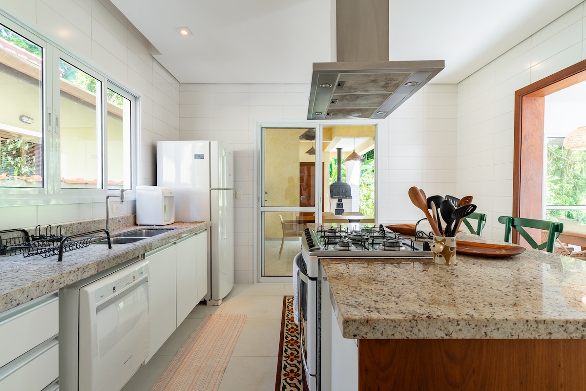 Teach iontach 900m ó thrá Riviera de São Lourenço agus go leor spáis fóillíochta ann. Foirfe dóibh siúd a bhfuil meas acu ar an dúlra agus ar spás sábháilte. 🍃🌊 Teach iomlán ina bhfuil 5 sheomra seomraí, aerchóiriú i ngach seomra, cistin iomlán feistithe, aerchóiriú sa chistin agus sa seomra suí, Teilifís Chliste, limistéar lasmuigh ina bhfuil beárbaiciú, lochtán gourmet, linn snámha phríobháideach ina bhfuil hidreamasaíocht, agus an fhéidearthacht téamh a chur air, Wi-Fi ardluais, áit le hobair agus spásanna páirceála do 5 charr. casadepraiaaconchegante