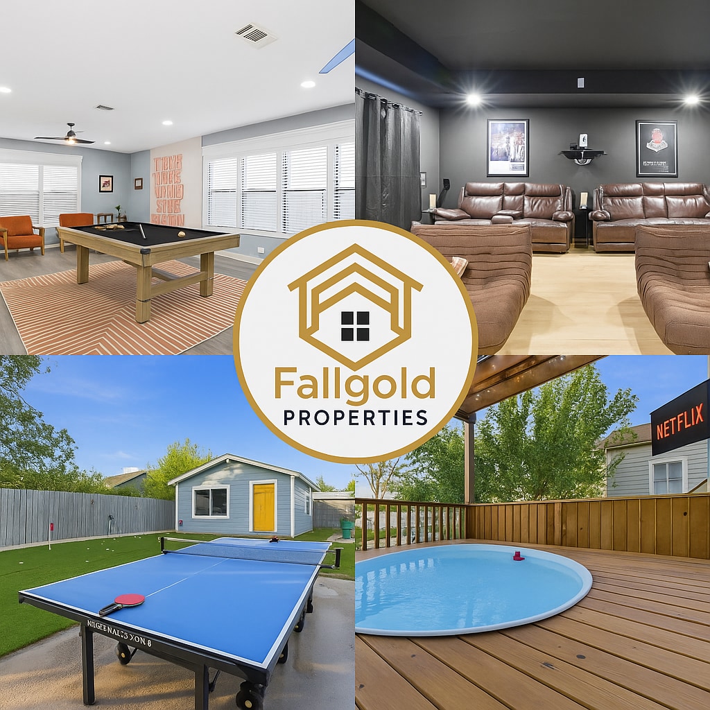 Bí ag spraoi, lig do scíth, agus déan ceangal ag an tearmann lárnach uathúil seo! Lig do scíth ag an linn snámha buachaill bó nó téigh chuig scannán i d'amharclann phríobháideach. Téigh amach chun dúshláin ghlasa a chur, ping phong, agus cluichí timpeall an teallaigh. Taobh istigh, bailigh sa bheár speakeasy, imir púil, imir cártaí, nó sruthú do chuid seónna is fearr leat. Foirfe do theaghlaigh, do chairde nó do lánúineacha, tá stíl, compord agus spraoi go léir sa teach fairsing seo—díreach cúpla nóiméad ó The Pearl, River Walk, The Alamo agus Downtown.