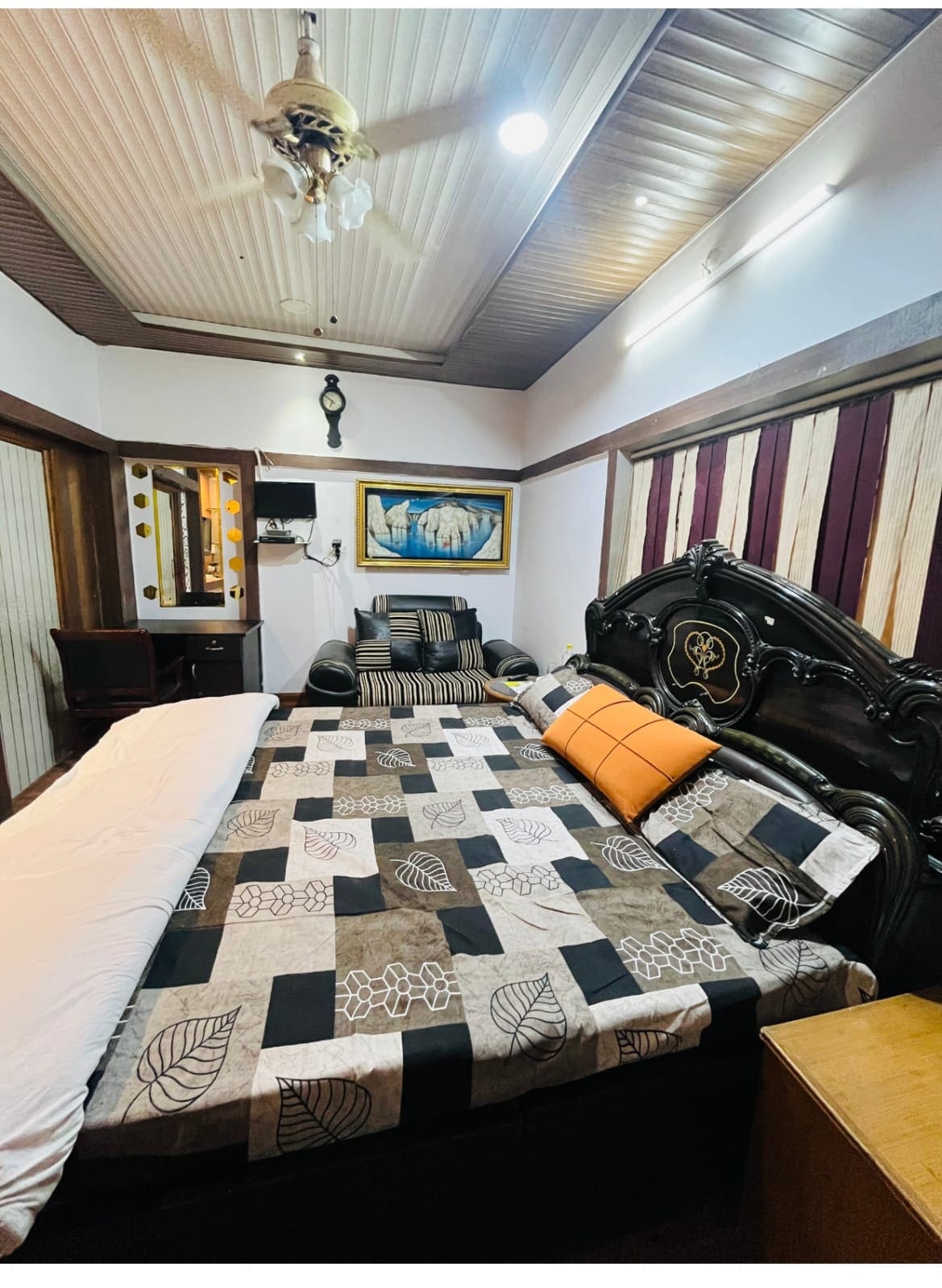 Is 1bhk Príobháideach é seo, teach ar an mbunurlár. Tá Sofa Cum Bed+TV+ Wiri sa Halla, agus seomra leapa (tá AC) ina dhiaidh sin. Tá cistin faoi throscán agus seomra níocháin fairsing in Riverstone 1BHK freisin. Cinntíonn na saoráidí seo fanacht compordach do suas le 4 -5 aoi. Tá feighlí agus foireann glantacháin ar fáil le linn uaireanta an lae le haghaidh aon chúnamh a theastaíonn. Is Óstaigh ghairmiúla muid a bhfuil taithí os cionn 5000+ Aoi againn. Má tá aon cheist eile agat, ná bíodh leisce ort DM! Freagraímid le 2 uair an chloig de ghnáth