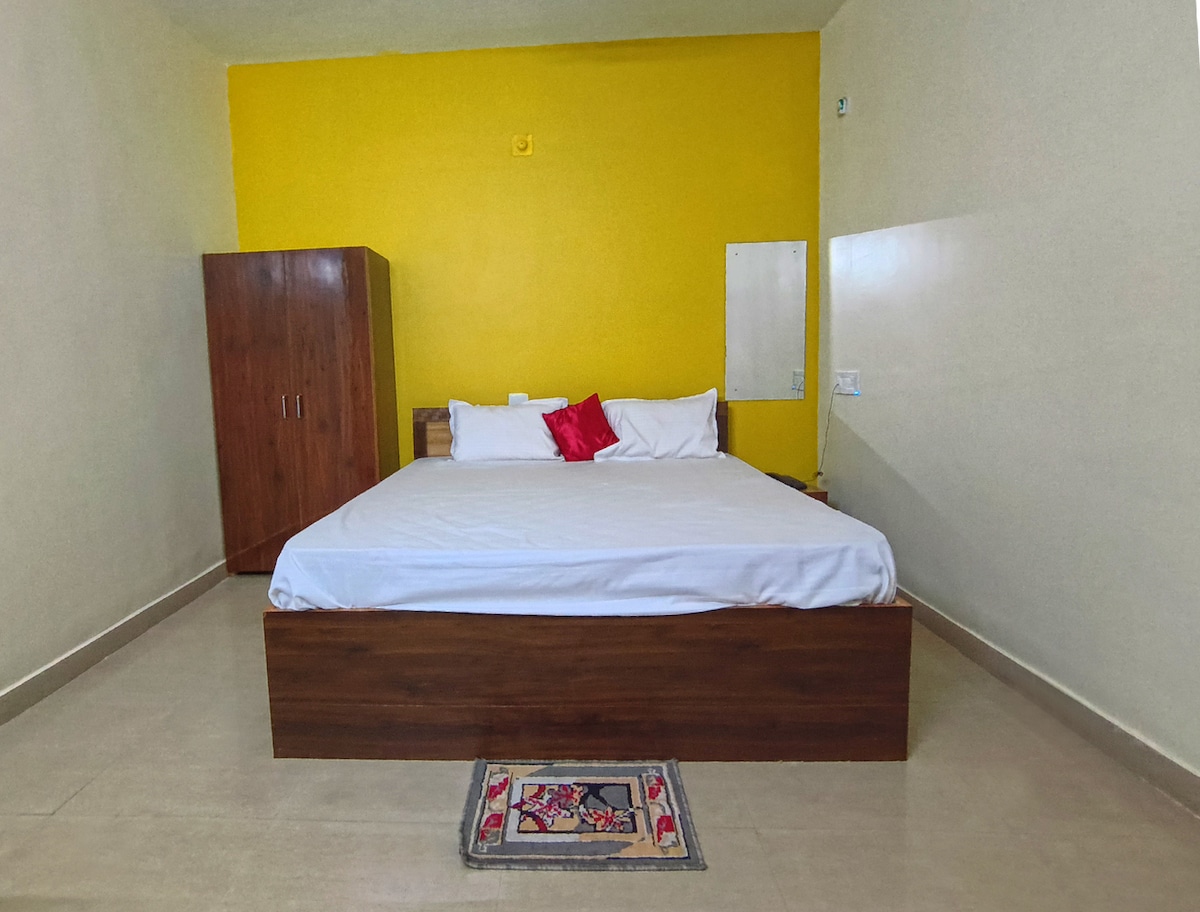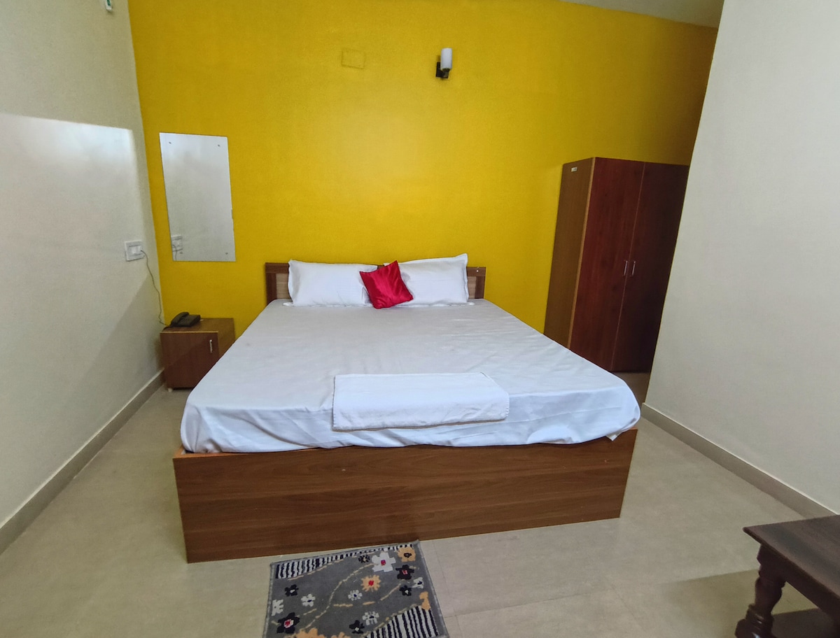 Comfortable in this spacious and unique space. Well ventilated, neat and clean rooms. Everything available nearby, Silent and peaceful. Balcony, Self cooking kitchen. In house restaurant. Self drive car, pick up, drop facilities available. city guide and temple guide available. Functions, Events, Parties allowed with additional changes. Pets allowed with additional changes. Events and parties allowed with additional charges upon request. Designated smoking zone.Station and Airport 1.5 KM away.