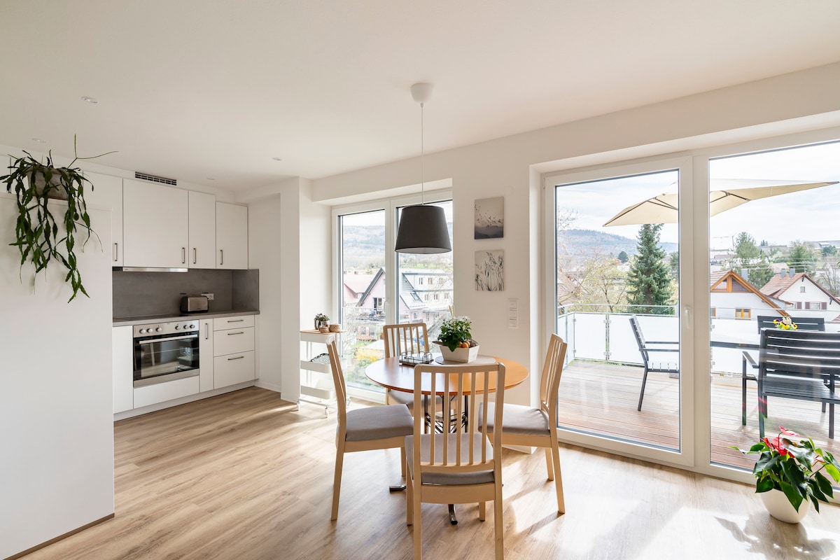 Tá ár n - árasán (40sqm) suite inár bhfoirgneamh nua le bealach isteach ar leith agus cuireann sé gach rud a theastaíonn uait ar fáil ar feadh cúpla lá suaimhneach. Is féidir teacht ar áiseanna siopadóireachta de chineál ar bith laistigh de chúpla nóiméad siúil. Tugann na móinéir agus na foraoisí in aice láimhe cuireadh duit chuig siúlóidí beaga agus siúlóidí móra freisin. Turais in aice láimhe: Féilire Advent Gengenbach Europapark Vogtsbauernhöfe Gutach Strasbourg, Colmar Conairí fánaíochta Éagsúla de chuid na Foraoise Duibhe (Aip na Foraoise Duibhe)