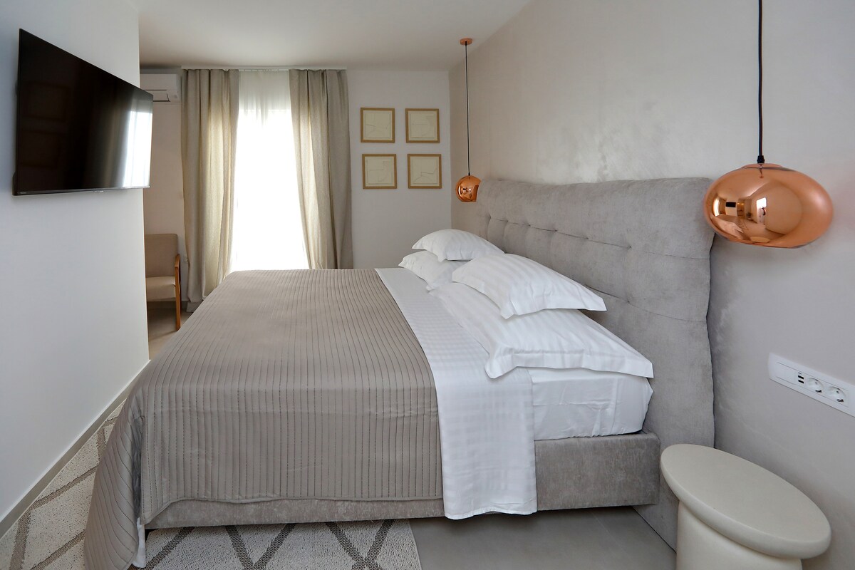Tá dhá árasán aon seomra leapa agus árasán stiúideo amháin in Angelo. Tá radharc álainn ar an bhfarraige sa réadmhaoin agus tá an trá díreach os a chomhair. Tá rochtain ag aíonna ar chlós mór cois farraige ina bhfuil páirceáil phríobháideach saor in aisce. Cuireann na hÁrasáin nua - athchóirithe Angelo saoire uathúil ar fáil cois farraige. Ina theannta sin, tá aerchóiriú, idirlíon gan sreang, agus miasniteoir agus meaisín níocháin feistithe sna hárasáin.