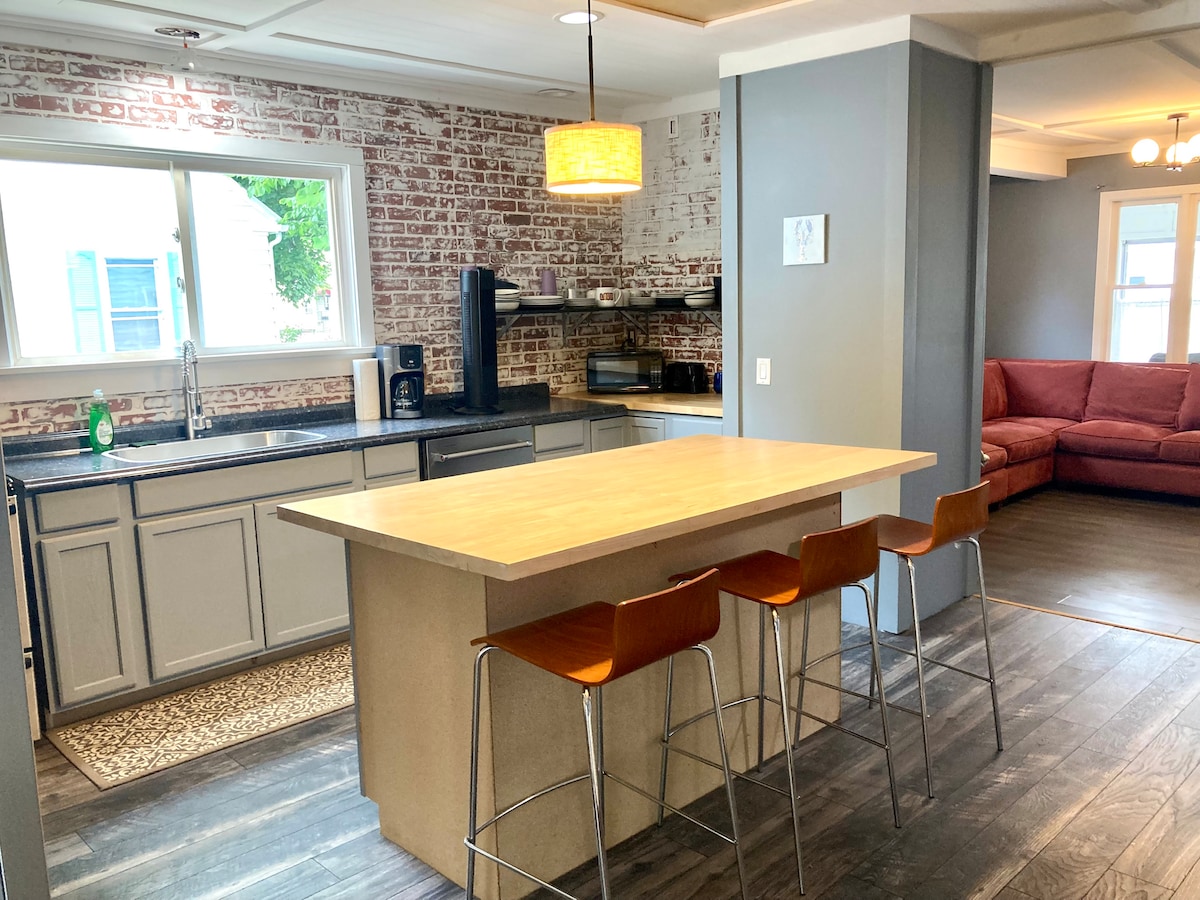 Lean muid ar IG @anchorunwind. Fáilte chuig Teach Mama Bear! Saoire do chailiní foirfe nó chun duine speisialta a cheiliúradh. Suigh siar agus lig do scíth inár dteach galánta úrnua agus lánfheistithe nach bhfuil ach 5 nóiméad ar shiúl ó Chearnóg Duga Kennebunkport. Caith am ag léamh agus ag ól caife úrbhunaithe ar ár gcathaoir ubh chluthar, ag féachaint inár gcúlchlós síochánta agus luí na gréine ag dúnadh caibidil speisialta eile de do shaoire. Bain sult as an firepit le cócó te agus s'mores nó titim le haghaidh cluiche cornhole!