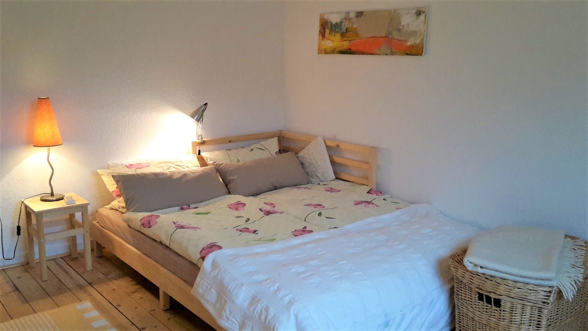 Tá an áit d'aíonna suite ar an dara hurlár faoin díon agus tá seomra leapa beag 12m² agus cistin ann. Tá an leaba adhmaid 140cm ar leithead beartaithe do dhuine amháin. Le chéile bainimid an chistin dea - fheistithe chomh maith le seomra folctha agus leithreas ar an mbunurlár. Cuirtear folcadán agus tuáille ar fáil. Tá fáilte romhat fanacht sa ghairdín freisin. Siúlóid thart ar 10 nóiméad chuig an bpríomhstáisiún bus agus i lár Gütersloh. Tá bácús, caiféanna, agus áiseanna siopadóireachta (orgánacha) sa chomharsanacht láithreach. shíl de