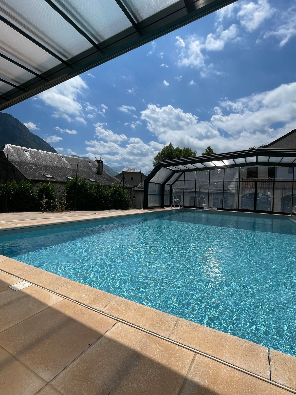 Fáilte go dtí ár gcóicín teaghlaigh, atá optamaithe agus dea-dheartha. Suite ag bun na sléibhte, tá an tearmann beag síochána seo foirfe do theaghlaigh atá ag lorg suaimhnis, compoird agus saoire. Deartha chun sos úr a thairiscint duit, idir chompord nua-aimseartha agus draíocht tuaithe, is é an sean-áras saoire seo ina bhfuil linn snámha faoi dhíon an túsphointe do go leor siúlóidí i sráidbhaile atá lán de stair. I gcroílár Ghleann Ossau, bain sult as réimse gníomhaíochtaí 4 shéasúr.