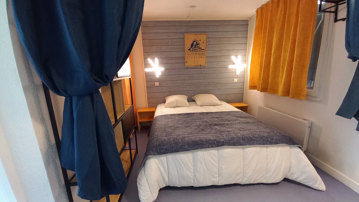 Fáilte go dtí ár n - árasán teolaí athchóirithe le rochtain ar ghairdín agus linn snámha (Meitheamh go Meán Fómhair) i gcroílár Bielle i nGleann Ossau. Bealach isteach féinchuimsitheach, cistin lánfheistithe, seomra leapa le leaba 160 cm agus leaba thoilg 2 leaba (130 cm). Clós clúdaithe chun rothair, scíonna a dhaingniú... Bácús agus bialanna timpeall an chúinne. Ag bun ardchlár Benou ar an mbóthar go dtí an Col de Marie - Blanque miotasach, is féidir leat rochtain a fháil ar go leor suíomhanna siúil agus fánaíochta.
