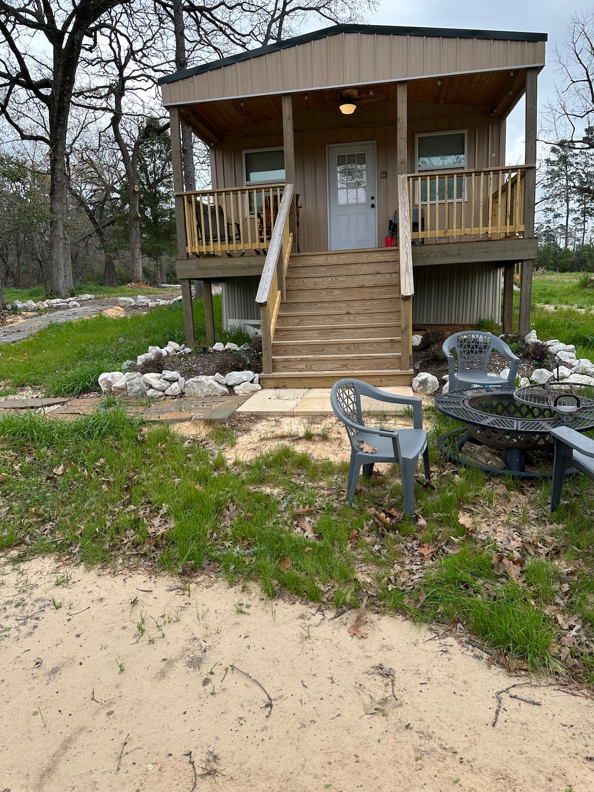 20 acra de scíthe i gcoillte piney na Texas Thoir. Inrochtana go héasca ó gach treo. Ní áit é seo chun go leor fuinnimh a úsáid mura mian leat cuairt a thabhairt ar mo roinn scoilte connadh. (Is féidir liom cúpla dollar a bhualadh den phraghas má dhéanann tú!) Tá teach úinéirí béal dorais, Gríoscán, caiteoir tobac, poll dóiteáin, agus cithfholcadán breise lasmuigh. Tá an lochán stocáilte le péirse. Conairí áille siúil. Tá cairt gailf ar an láthair ach d'fhéadfadh infhaighteacht a bheith teoranta. Slán go fóill!