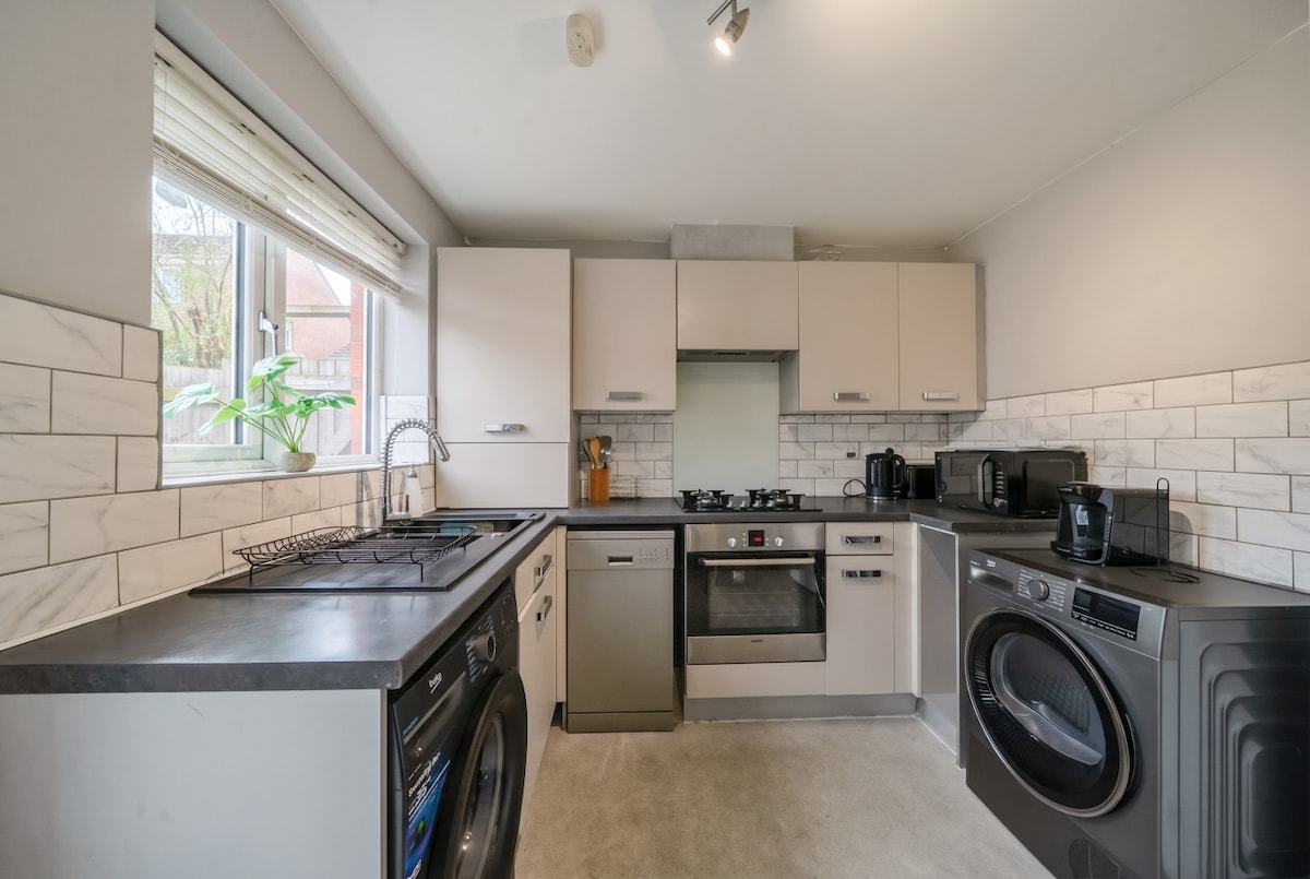 Fan i dteach nua-aimseartha fairsing 2 sheomra leapa in Wednesbury, atá deartha le haghaidh compoird agus áisiúlachta. Tá an réadmhaoin foirfe do theaghlaigh, do ghairmithe, do chonraitheoirí agus do ghrúpaí beaga, agus cuireann sí socruithe solúbtha codlata, spás maireachtála plean oscailte agus féinseiceáil isteach éasca ar fáil. Le páirceáil ar chabhsa príobháideach agus rochtain thapa ar an M6/M5, chomh maith le naisc iompair áitiúla, siopaí agus saoráidí, tá an teach seo oiriúnach do chuairteanna gearra agus do thréimhsí fanachta níos faide.