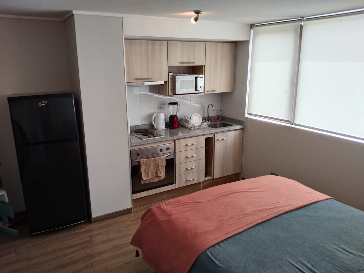 Stiúideo Tí Renovado. Bronnta ag Airbnb! Fad siúil chuig gach rud agus gar do lár Concepción. Feistithe go galánta, feistithe le go mbeidh duine nó beirt compordach agus go mothóidh siad "sa bhaile ". Leaba dhúbailte, Cábla & teilifís Wi - Fi, seomra folctha agus cistin feistithe. Rochtain ar Níochán. Is cainteoirí Béarla muid! Táimid sásta cabhrú leat fanacht inár gcathair!