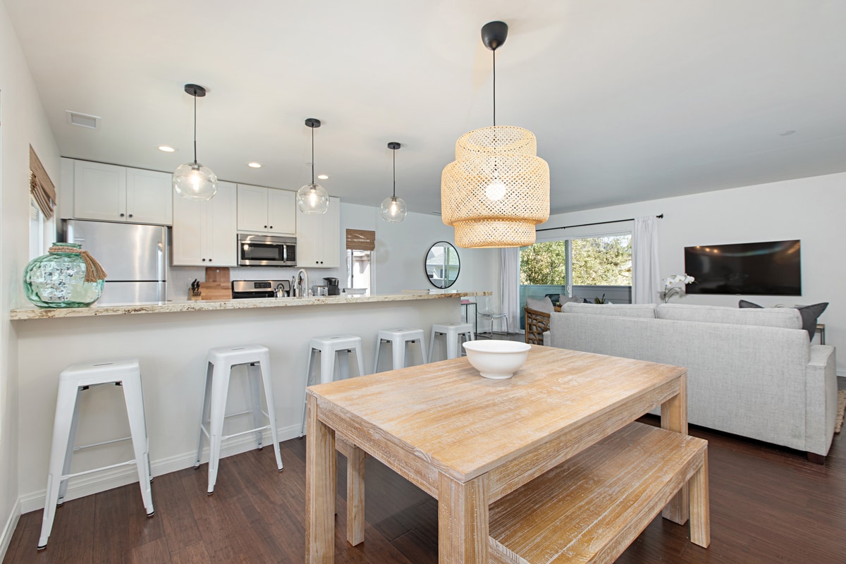 Is é seo California Dreaming! Tá do theach saoire suite i gcomharsanacht iontach Pacific Beach. Tá sé suite go lárnach agus achar siúil chuig an bpobal bríomhar trá seo go léir. Fan áitiúil agus tabhair cuairt ar go leor bialanna, caiféanna, siopaí, an bhá, agus an trá agus an clárchosán a bhfuil cáil dhomhanda air in PB. Ansin téigh amach chuig tránna, músaeim, cosáin fánaíochta, séadchomharthaí agus comharsanachtaí uathúla eile in aice láimhe. Taifid a chasadh agus tú ag cócaireacht na mbéilí is fearr leat i gcistin nua thaibhseach.