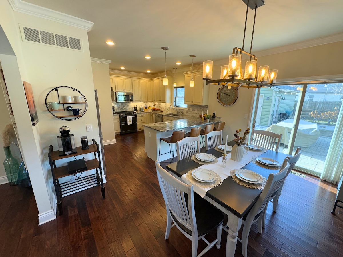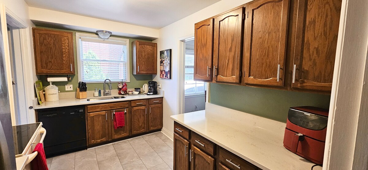☕ Meaisín espresso uathoibríoch le pónairí áitiúla rósta! Teach feirme uathúil athchóirithe ó na 1930í, nuashonraithe leis na saoráidí nua-aimseartha is déanaí. Foirfe chun do scíth a ligean le do theaghlach nó le cairde. Lonnaithe in achar siúil ó chroílár na Darach Ríoga. 15 nóiméad go lár Detroit. 7 nóiméad go Ferndale nó Detroit Zoo. Idirlíon snáithín thar a bheith tapa (500-600Mbps). Sruthscannáin ar an teilifís QLED 65 orlach mion - LED. Tá an teach lán le carachtar. Obair chloiche shaincheaptha laistigh agus lasmuigh.