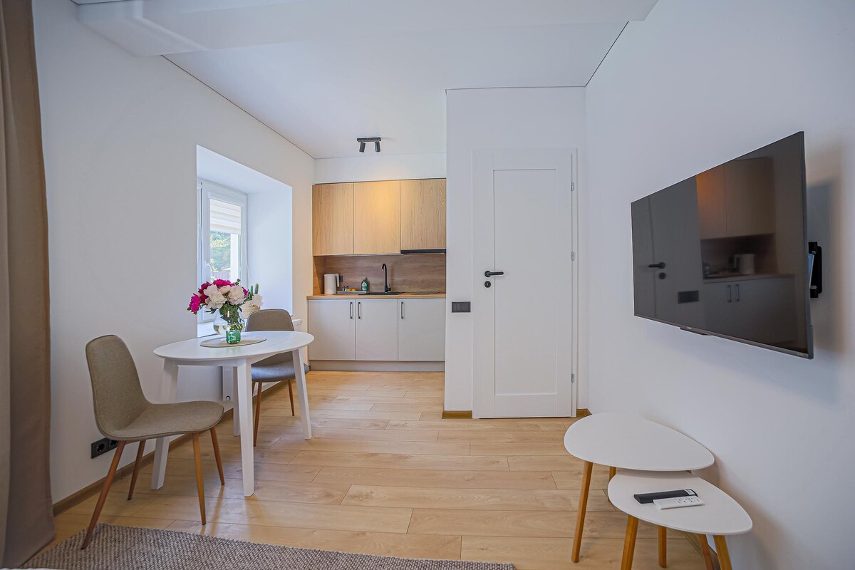 Más mian leat cónaí in áit ghlan chiúin, bain gach príomhphointí turasóireachta de shiúl na gcos, bíodh dinnéar deas agat nó má tá oíche fhionnuar agat, ba chóir duit fanacht san árasán stiúideo beag bídeach seo (37m2). Tá sé suite i gcroílár Old Kaunas (1300m ón lár). Anseo gheobhaidh tú; - Glan línéadach leapa bán, - Tuáillí, - Cuisneoir, miasa, - Taephota le iarta leictreach, - Gloiní fíona, pota, panna, - Tábla caife, - Wi - Fi, Cith, Leithreas, - Teilifís le 380 chan, - Caife agus tae, - Tá leaba thoilg ann do 2 dhuine,