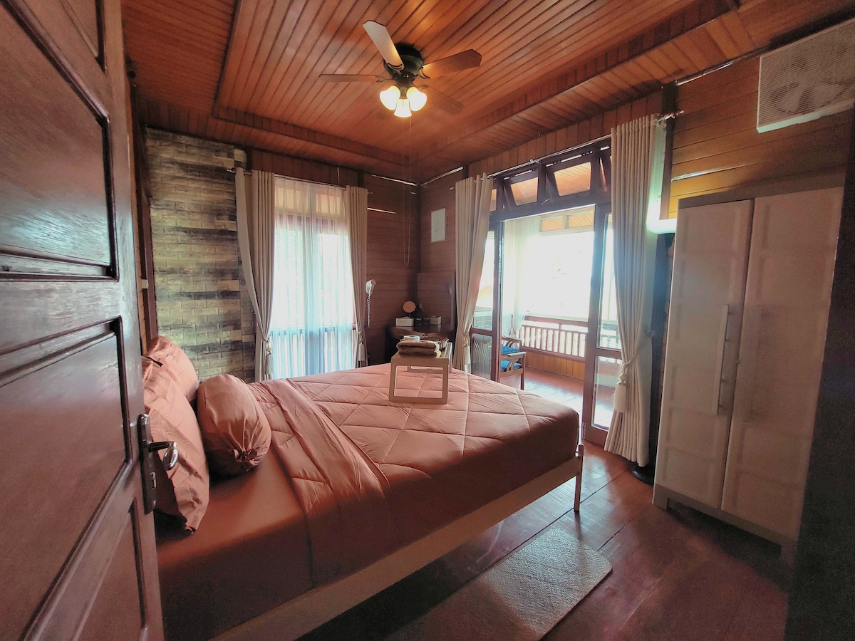 Fáilte go Hidden Grove, do shaoire shíochánta i gcnoic áille Passo, North Sulawesi. Bain sult as radhairc iontacha ar an loch agus as glasra méith le fuaimeanna suaimhneacha an dúlra. Cuir tús le do mhaidin le héirí gréine iontacha ón bpaitió, ansin lig do scíth i bhfoinsí te nádúrtha nó déan iniúchadh ar chosáin fánaíochta. Tá ailtireacht thraidisiúnta adhmaid i ngach seomra, ina gcomhtháthú idir draíocht bhaile agus compord nua-aimseartha. Cibé acu an bhfuil tú ag lorg scíthe nó eachtraíochta, is é Hidden Grove an áit is fearr le hathcheangal a dhéanamh leis an dúlra agus leat féin.