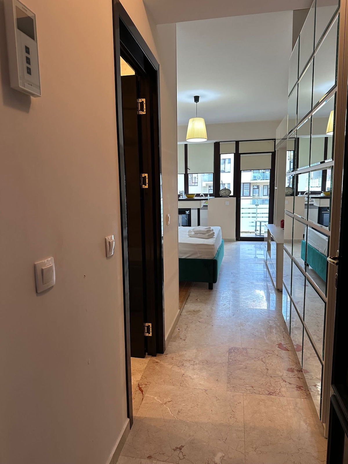 Carla's apartment is located in the quiet and green area of the city, being very close to the center (5 min by car) and the airport (5 min by car). The block is a recently building and the apartment has not been lived before, everything is new! The apartment have a big living room whit extensibile sofa and smart TV, a separete bedroom whit matrimonial bed and memory foam mattress and also smart TV, fully equipped kitchen with washing machine, gas stove, electric oven, dishwasher, microwave oven, refrigerator, toaster, coffee maker, cooking utensils and dishes, and a bathroom whit shower and hairdryer. The apartment have air conditioner and underfloor heating and a elegant terase. Inside you have everything you need to feel like at home!