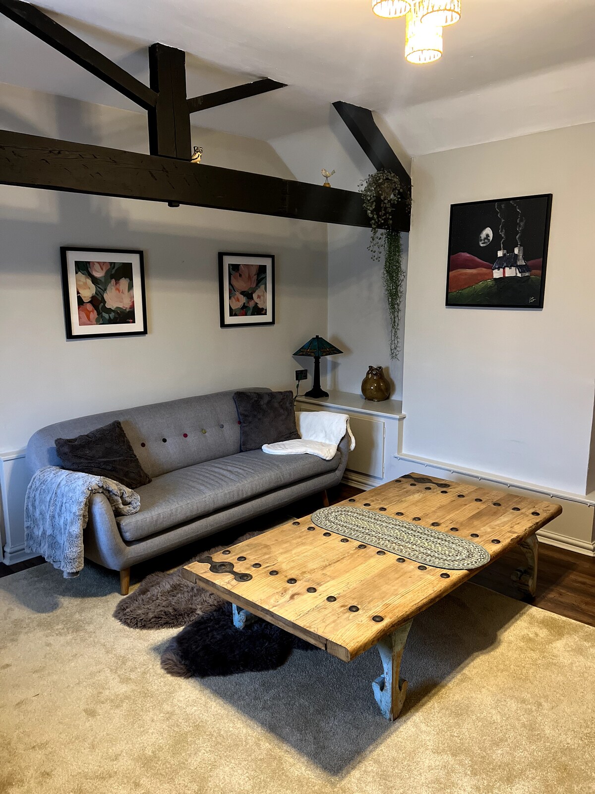 Tar éis dúinn ár rath stoirme ar feadh 6 bliana lenár nÁrasán Hayloft cluthar, rinneamar an seomra folctha a athfheistiú go hiomlán, cistin úrnua a shuiteáil agus seomra leapa / staidéar amháin a chur leis. Péint úr, dallóga agus cairpéid ar fud! Tá páirceáil thiomnaithe ag aíonna [Anois le Luchtú EV] paitió príobháideach le haghaidh bricfeasta grianmhar, lónta nó sundowners. Tá béilí réidh atá cócaráilte sa bhaile ar fáil sa chuisneoir nó sa reoiteoir nuair a thagann tú. Seol teachtaireacht nuair a dhéanfaidh tú áirithint agus is féidir linn sonraí a sholáthar. Is mór an bua é an pacáiste fáilte.