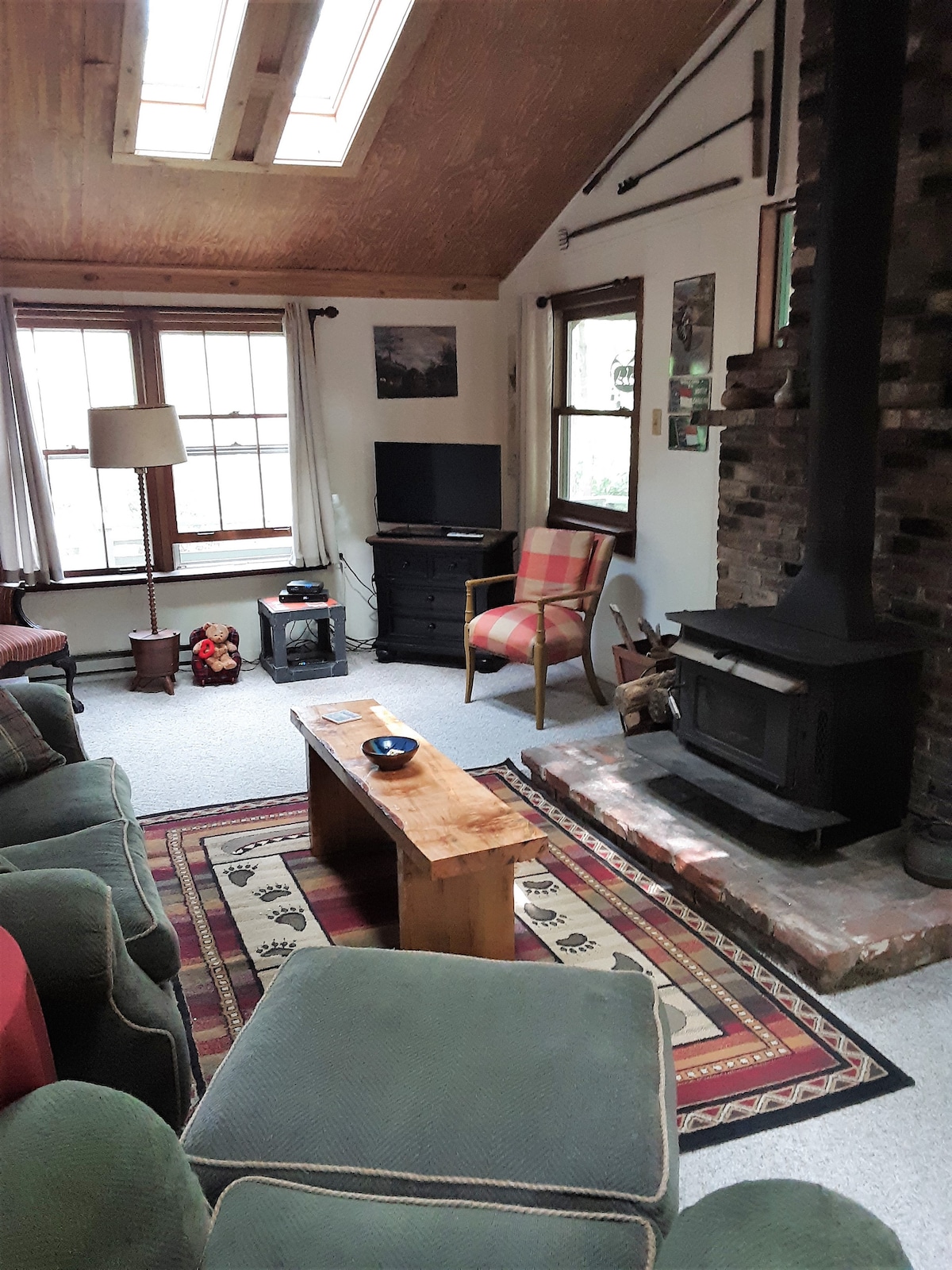 Tá Teachín Brainse Glan 750 troigh chearnach le 180 troigh chearnach de phóirse clúdaithe timpeallaithe go hiomlán ag foraois, ar féidir taitneamh a bhaint as suí ar an bpóirse nó taobh istigh le fuinneoga agus radhairc mhóra pictiúr ar fud. Tá seomra leapa amháin ann ina bhfuil leaba bhanríona, agus leaba lán le 2 thocht shingil. Tá seomra suí compordach le maisiúchán lár an chéid in aice leis an gcistin atá feistithe go maith. Tá bord bia sa phóirse ina bhfuil suíocháin bhreise. Tá gríoscán gáis, neart suíocháin agus fáinne dóiteáin sa chúlchlós príobháideach.
