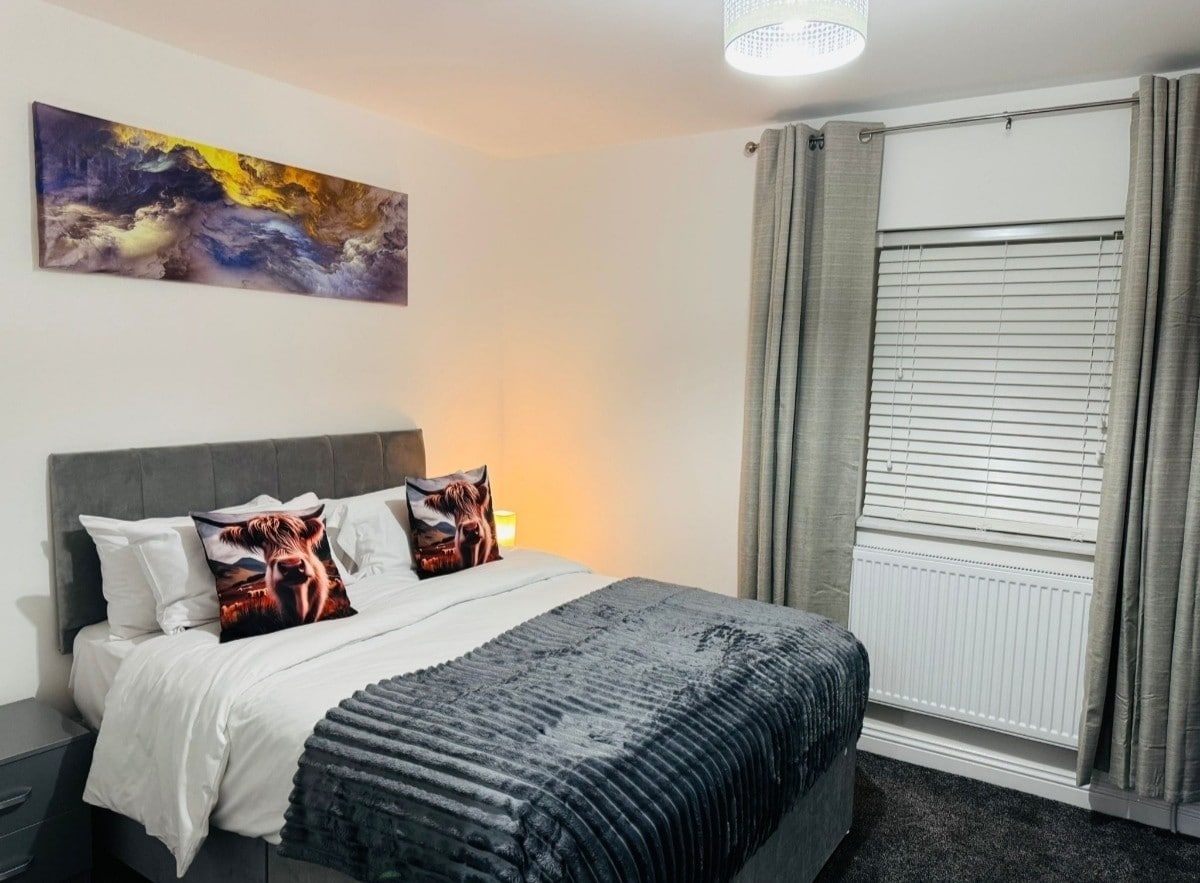 This modern one-bedroom flat in the heart of Blackburn. Is stylish, bright, and newly renovated with a comfy lounge, Smart TV, fast Wi-Fi, and a fully equipped kitchen. The cozy bedroom features a plush double bed and blackout blinds for a perfect night’s sleep. Enjoy a modern bathroom with fresh towels and toiletries. Ideal for couples, professionals, or solo travellers.