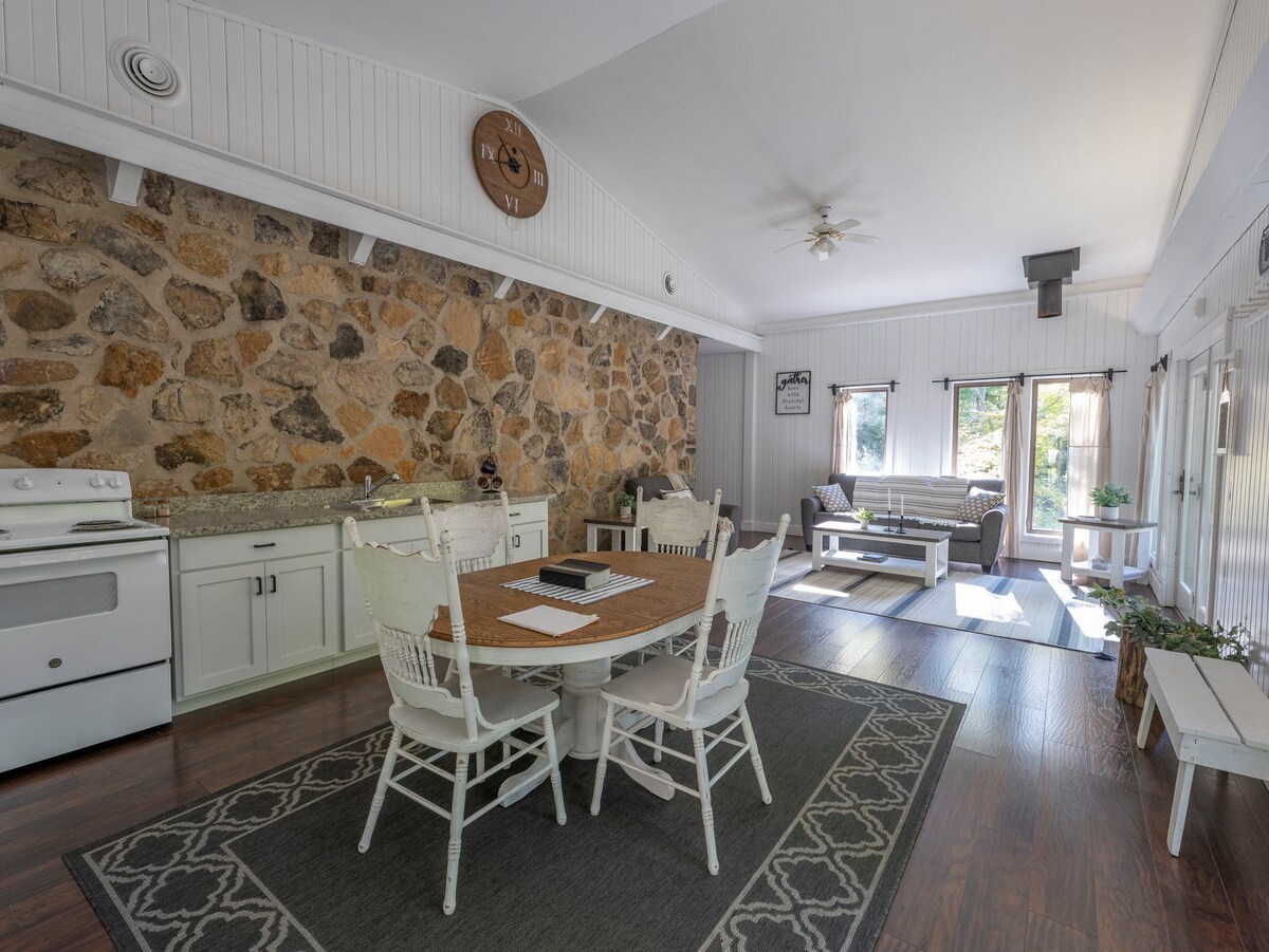 Lonnaithe ar an Abhainn álainn Kokosing taitneamh a bhaint as na fuaimeanna is fearr agus sunsets breathtaking tá an abhainn seo a thairiscint. Achar gearr go dtí coláiste Kenyon, easanna Rith Mil, fiach, iascaireacht, Apple Valley Lake, cosán rothar Kokosing agus tír Ohio Amish. Ní rithfidh tú amach as rudaí le déanamh. Ansin lig do scíth agus lig do scíth le cithfholcadán séasúrach téite lasmuigh agus paitió síochánta chun féachaint ar luí na gréine agus ar an bhfiadhúlra flúirseach.