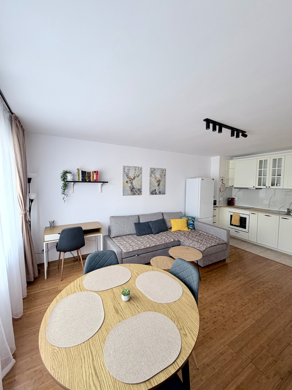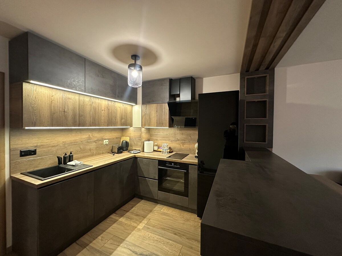 Fáilte go dtí Árasán Shazam – áit fanachta nua-aimseartha spreagúil i gcroílár na cathrach. Athchóiríodh go hiomlán é i mí an Mhárta 2026, agus tá compord, stíl agus gach rud a theastaíonn uait ann laistigh d'achar siúil. Bain sult as seomra suí geal ina bhfuil leaba thoilg, áit itheacháin, teilifíseán ar a bhfuil Netflix agus MAX, agus Wi-Fi saor in aisce. Tá an chistin feistithe go hiomlán, móide meaisín níocháin. Tá leaba 160×200, vardrús, teilifíseán agus rochtain ar an ardán sa seomra leapa. Foirfe do thréimhsí fanachta gnó agus fóillíochta.