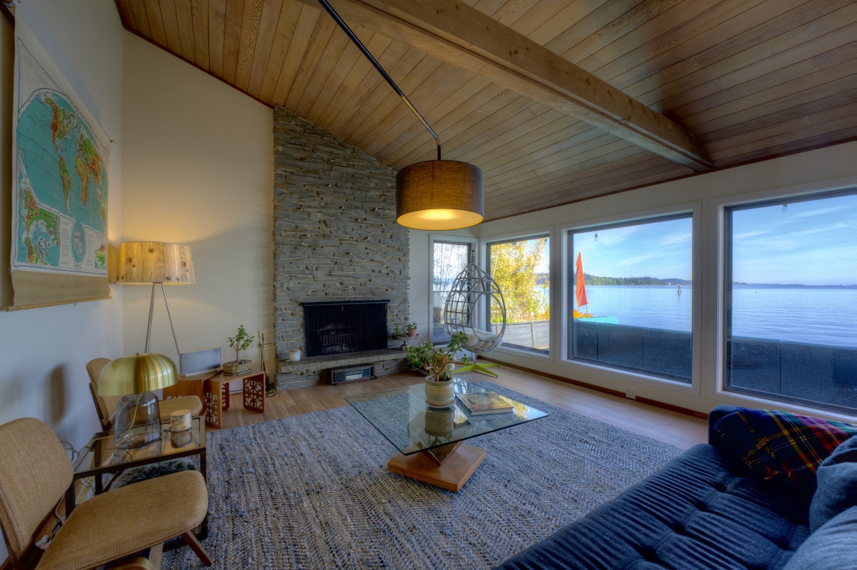 Teachín stiúideo cluthar geal ar an taobh ó thuaidh de Vashon. Puget Sound, Mount Baker agus radhairc dúlra. Athchóirithe go nua ar fud na hEorpa le deic mhór chun taitneamh a bhaint as an bpoll dóiteáin lasmuigh agus radhairc uisce. Comharsanacht chiúin laistigh d'achar siúil 10 -15 nóiméad chuig an mbád farantóireachta agus uaidh (tabhair faoi deara go bhfuil claontacht ann agus muid ar an gcnoc thuas). Fia, seabhaic, iolar agus níos mó timpeall na réadmhaoine. Tar agus bain sult as seod áitiúil agus faigh blaiseadh de mhaireachtáil ar oileán beag, turas farantóireachta 20 nóiméad ar shiúl ó Seattle!