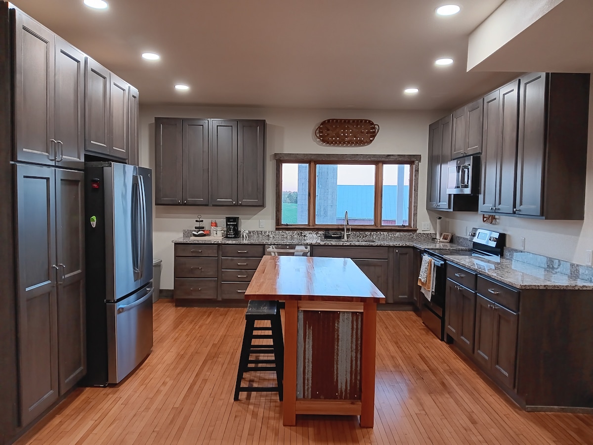 Seoid TÍRE! Is é Sawmill Creek Farm ár dteach feirme 5 sheomra leapa atá neadaithe faoi thuath Blanchardville sa Chontae Glas, Wisconsin. Is é an fanacht foirfe é do do theaghlach agus do chairde chun cuimhní speisialta a dhéanamh agus tús a chur le traidisiúin. Tá ár réadmhaoin tí feirme in áit uathúil álainn do chruinnithe teaghlaigh, do bhainis bheag, do theacht le chéile, do thearmann nó do cheiliúradh agus díreach áit iontach le dul ar saoire agus do scíth a ligean. Le go leor aíonna ar ais chun taitneamh a bhaint as an traidisiún!
