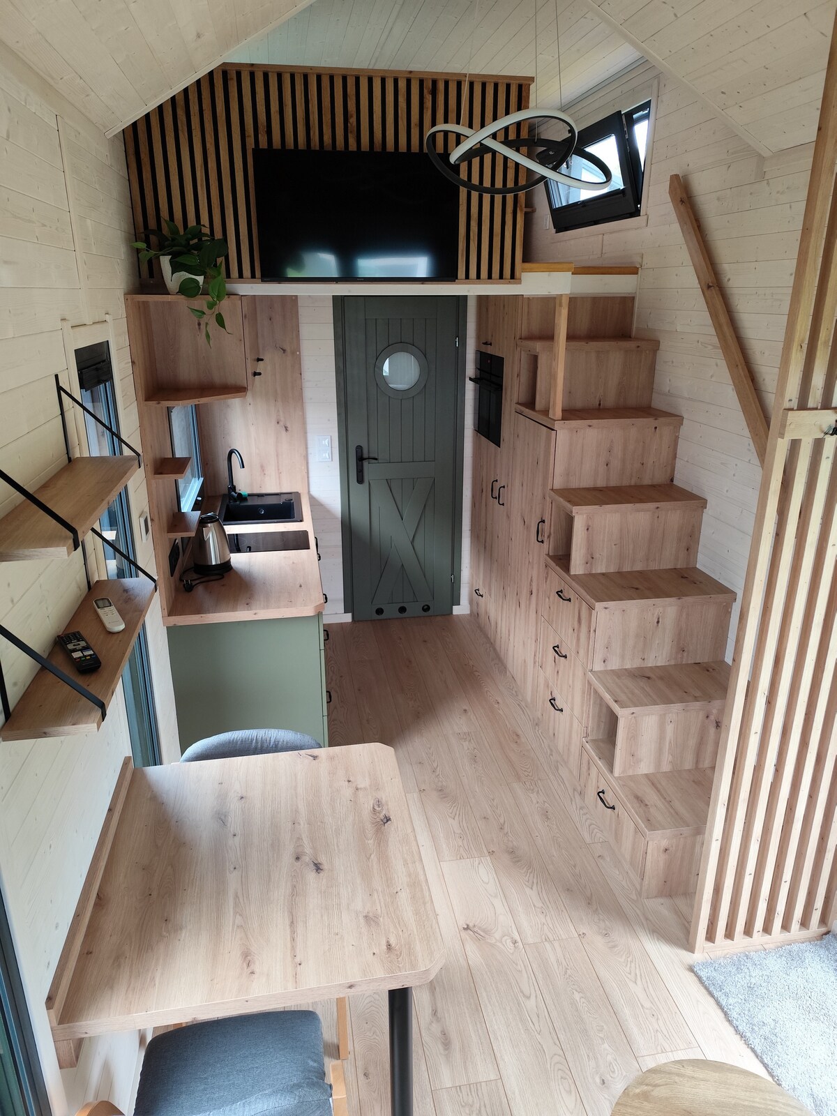 Son: + Scioból déanta as grámhar + Cistin lánfheistithe & Tábla bia mór + Gairdín mór le beárbaiciú agus Tábla Mór. + 2 sheomra folctha le cithfholcadán mór + Eifelsteig laistigh d'achar siúil + Wi - Fi tapa + Smart Tv: Netflix & Youtube + Seiceáil isteach solúbtha + Páirceáil ar an réadmhaoin + Tá óstaigh chabhracha ina gcónaí in aice láimhe CONS: - Áiseanna siopadóireachta & bialanna in Gerolstein (5km) - Níl leaba amháin inrochtana ach trí dhréimire - tá an staighre thart ar 44° beagán níos géire ná mar is gnách
