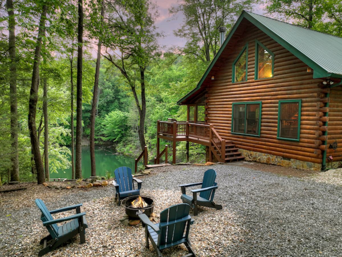 Saoráidí a bhfuil tóir orthu ag lóistíní ar cíos ar imeall an uisce in Blue Ridge Lake