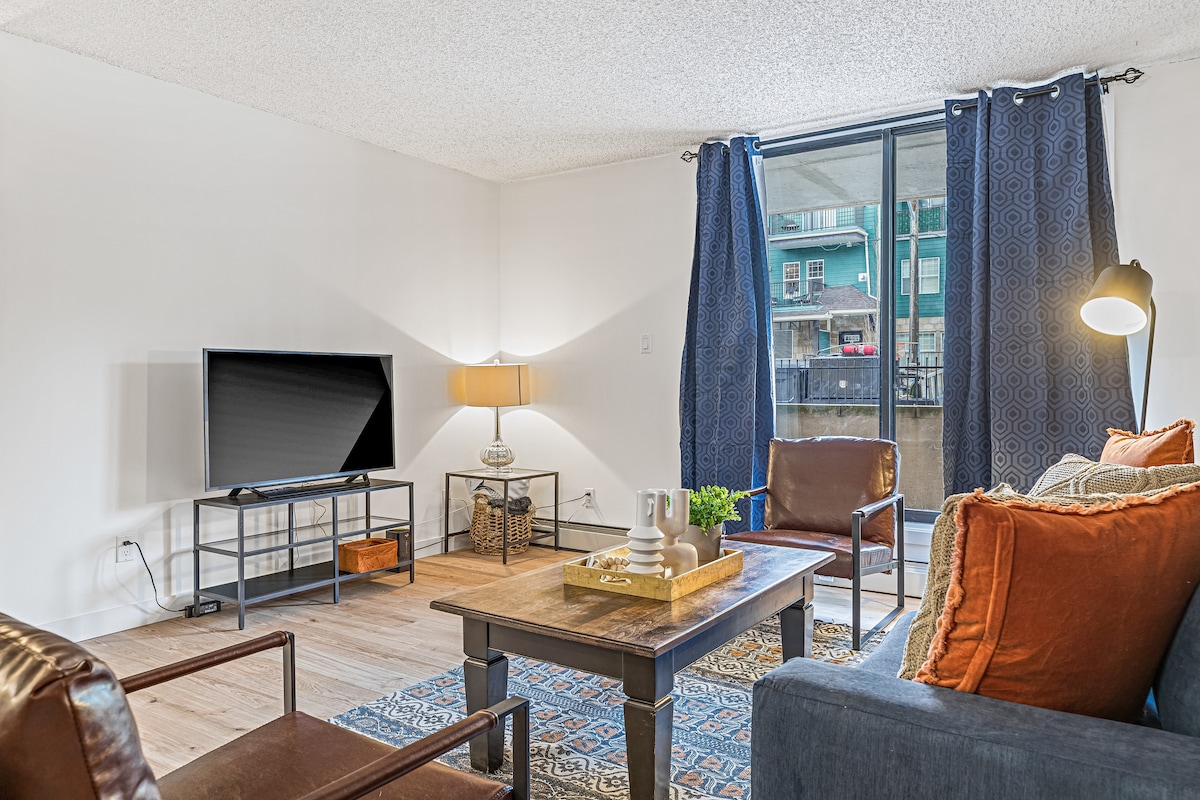 Fáilte go dtí ár n - árasán geal fairsing 2 sheomra leapa 2 sheomra leapa i gceantar Beltline Calgary. Foirfe do theaghlaigh nó do ghrúpaí beaga, tá seomraí leapa teolaí inár spás nua - aimseartha ina bhfuil éadaí leapa pluaise, cistin atá feistithe go hiomlán, agus áit mhór chónaithe ina bhfuil radhairc áille ón gcathair. Bain sult as áisiúlacht níocháin ensuite, Wi - Fi ardluais, beárbaiciú gáis nádúrtha, agus páirceáil laistigh saor in aisce. Agus caiféanna, bialanna agus nithe is díol spéise faiseanta díreach ar shiúl, is é ár n - árasán an bonn foirfe chun iniúchadh a dhéanamh ar Calgary.