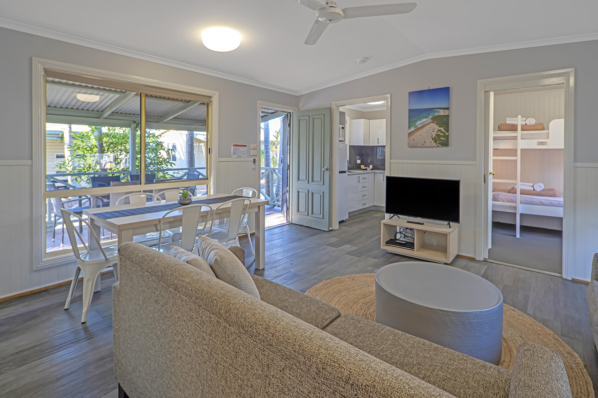 Cábán meallacach i Suíomh Suaimhneach Duilleogach, Lonnaithe go Breá i mBá Nelson Neadaithe i dtimpeallacht shíochánta dhuilleogach, cuireann an cábán seo atá feistithe go galánta tearmann suaimhneach ar fáil agus tú a choinneáil gar do gach rud atá ar fáil in Port Stephens. Foirfe do dhaoine singile nó do lánúineacha, is é an bonn foirfe é chun iniúchadh a dhéanamh ar áilleacht nádúrtha agus ar nithe is díol spéise spreagúla sa cheantar. Tá lár bhaile Bhá Nelson laistigh de shiúlóid 10 nóiméad. Tá siopaí éagsúla ann do do bhunriachtanais go léir le roghanna iontacha bia agus caife.