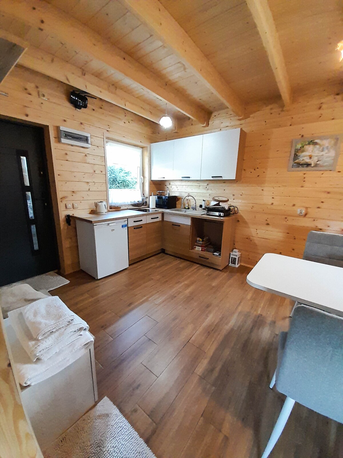 23 - Breacadh fálaithe - ó spás páirceála - gríoscán - agus poll dóiteáin - limistéar eitpheile féarach Ar an mbunurlár - cistin le cuisneoir, kitchen.ind.,kitchen.microfal., trealamh iomlán, déantóir caife - seomra suí ina bhfuil teallach(le haghaidh adhmaid) Teilifíseán Netflix - seomra folctha - cábla snáthoptaice - 2 thoilg dhúbailte Lochta íseal: -2 leaba dhúbailte - WC le seomra níocháin. Nithe is díol spéise do Cheantar :- Mogielica Peak - Zameek w Wiśniczu, Bochnia - Ardaitheoirí sciála (Laskowa,Kamionna) Íosmhéid ar cíos ar feadh 2 oíche
