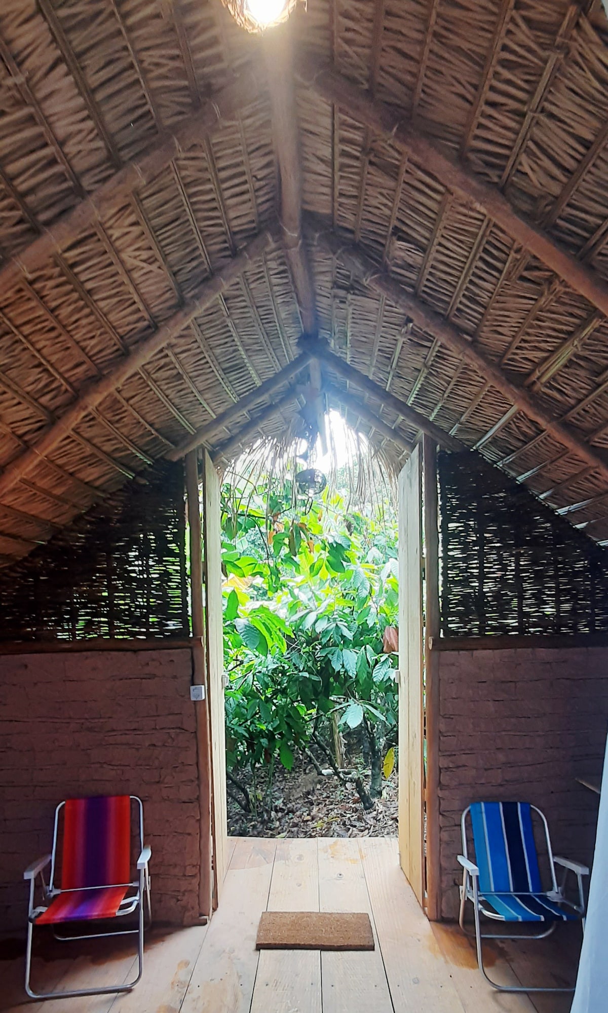 Tearmann i bhForaois oileán Boipeba. Ag 800m - Piscinas Naturais do Moreré, 200m - Vila Quilombola Monte Alegre agus 3km - Vila de Boipeba. Leis an teach déanta as cré, is cuid den Dúlra muid. Is é an rún anseo a bheith comhchuí agus meascadh leis an spás. Sin an fáth a ndearnadh an teach le hábhar níos inbhuanaithe: adhmad, buidéil, gloine agus fuinneoga ar an mbus agus sa charr. Barraíocht tirim le ceamara inmhúirínithe, agus uisce a ardaíonn ansin agus a fhilleann trí chiorcal na gcrann banana. Chun a bheith ann dom go bhfuil a bhraitheann cosúil le ceann amháin le momTerra.