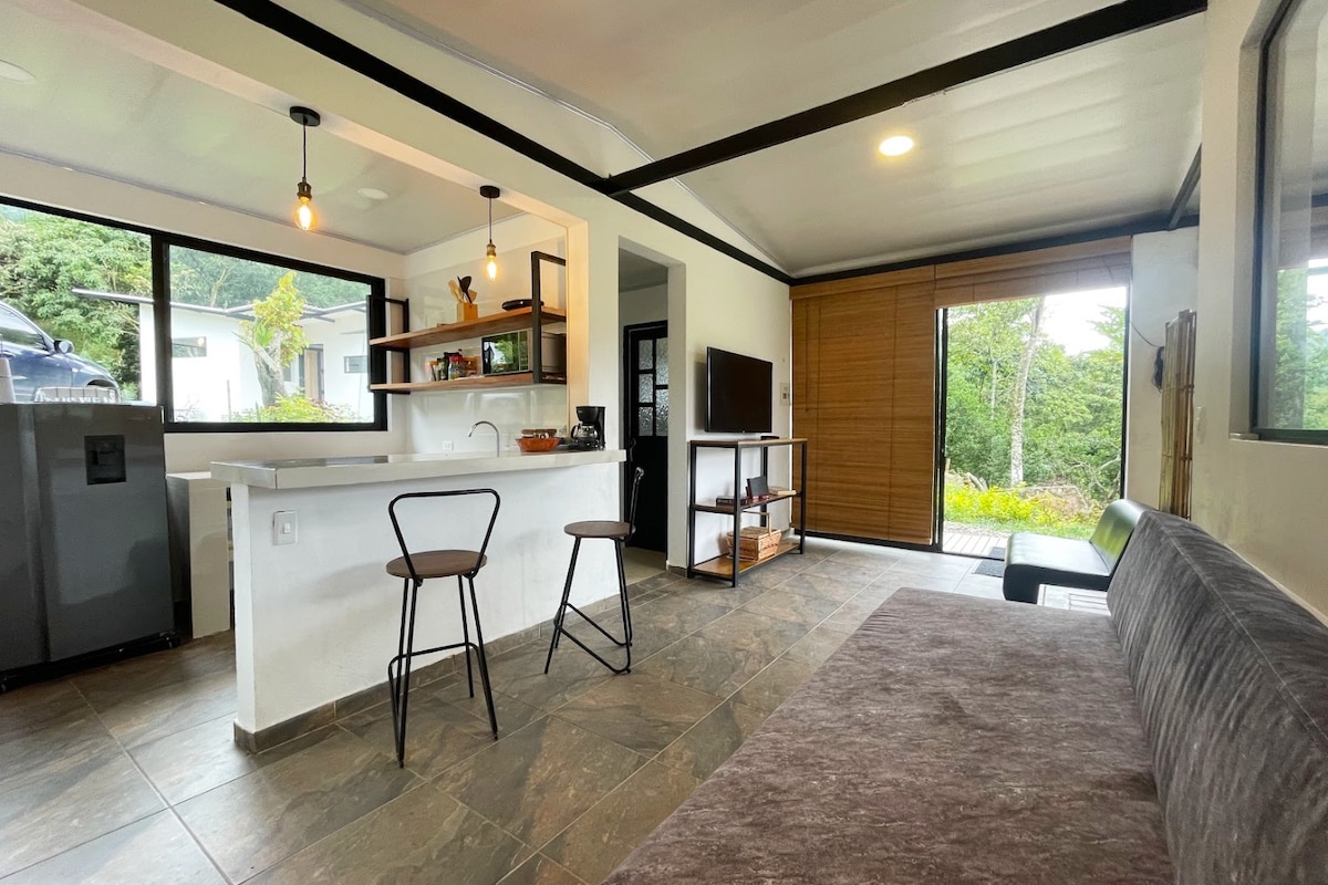Cábán atá suite i sléibhte an Resguardo Indígena de Chía, Cund. Ceangal leis an dúlra, radharc ar an mbardas agus ar na sléibhte, foirfe chun scíth a ligean ón gcathair agus nóiméad suaimhnis a bheith agat. In aice le Bogotá, 15 nóiméad ó lár na cathrach Chía agus 10 nóiméad ó Andrés Carne de Res, éasca teacht air. Tá áiteanna in aice láimhe chun rothaíocht nó siúl go cnoc Valvanera. Is féidir leat dul ann ar iompar poiblí, Uber nó tacsaí gan aon fhadhb, tá an bóthar ar fad pábháilte.