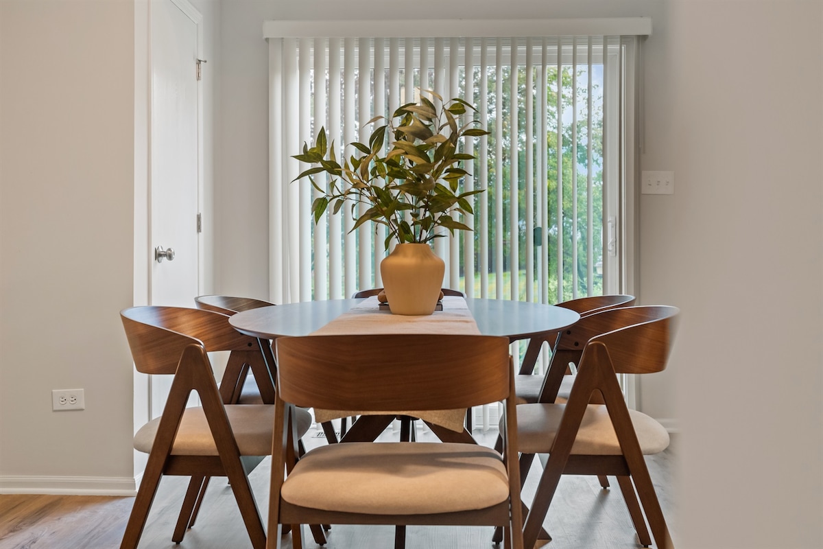 Fáilte chuig Nead Naperville! An deis a thabhairt do Naperville Thuaidh teach a fháil a oireann don teaghlach ar fad! Tá níos mó fáilte roimh pheataí ná taitneamh a bhaint as an 1/2 acra go hiomlán sa chlós. Is teach é seo atá nuashonraithe go hiomlán nóiméad ó Downtown Naperville, I -88 agus go leor cinn scríbe níos spreagúla i mBruachbhailte an Iarthair. Beidh tú ar do shuaimhneas cibé an bhfuil tú laistigh nó lasmuigh... tá teilifíseán féin ag gach seomra leapa agus cuimsíonn an seomra suí lasmuigh poll dóiteáin gáis nádúrtha & tábla itheacháin... tá gach rud sa teach seo!