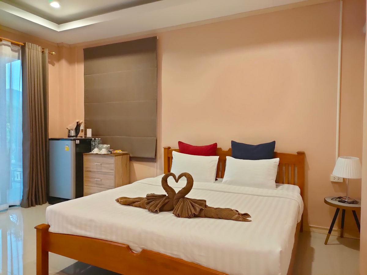 Teach adhmaid nádúrtha i ngairdín Suaimhneach le crainn mhóra tamarind os comhair an tí. Nuair a bheidh tú tagtha, déan iarracht maireachtáil ar luas mall i síocháin an tsráidbhaile. In aice le nithe is díol spéise do thurasóirí amhail uaimh Krasae, Iarnród an Bháis, Campa Eilifint, Wangpo, Eas Sai Yok Noi.