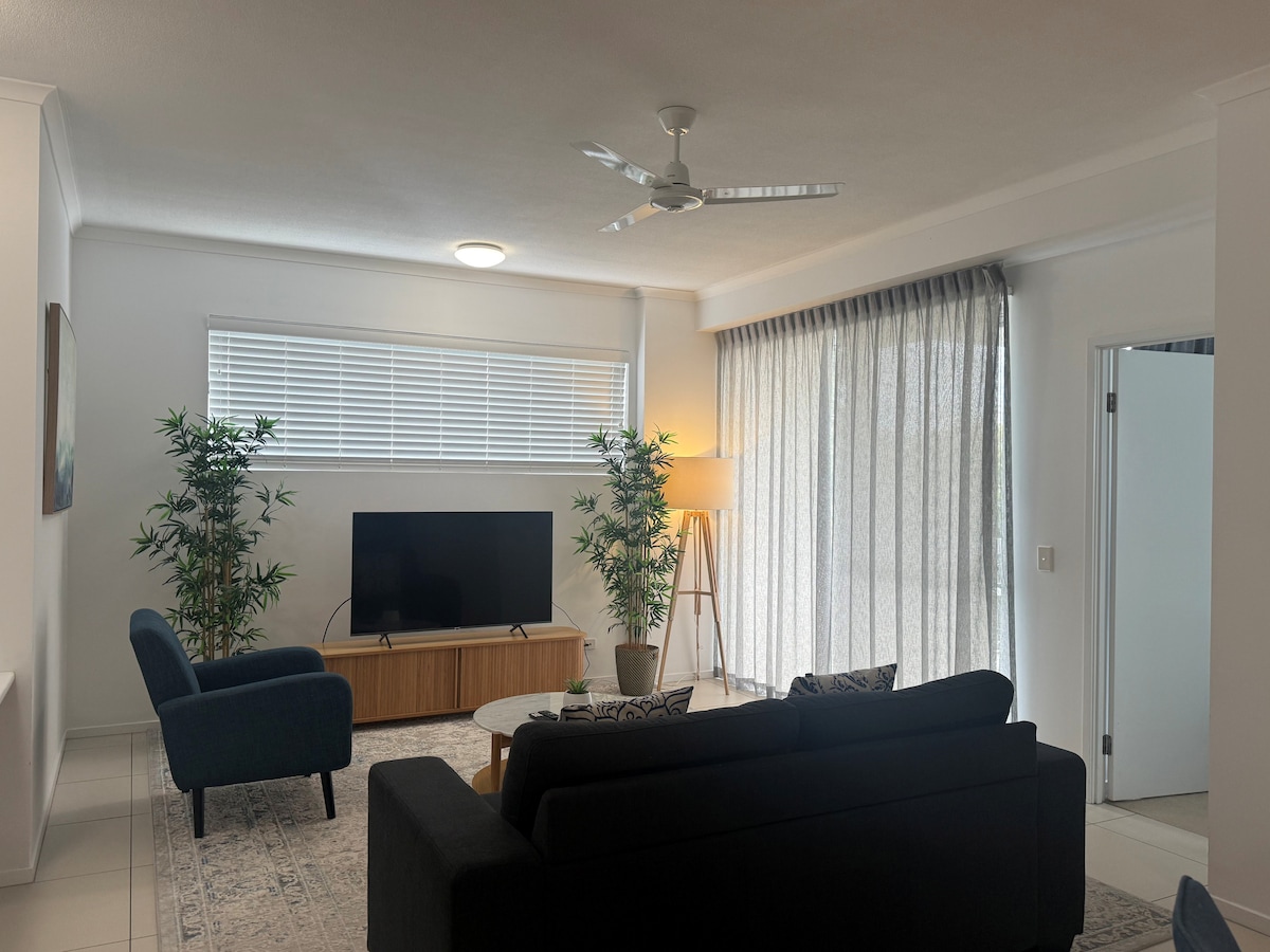 Take in the best sunset in Queensland! Relax & unwind in this modern coastal inspired get away only 100m from the waterfront. - complete use of downstairs air conditioned flat (we live upstairs) - private lounge, laundry & bathroom. - alfresco area, fire pit, lawn chairs - picnic rug, cheeseboard & chairs to take in the beautiful sunset across the road - Walking distance to waterfront, coffee shops, pubs and bars.