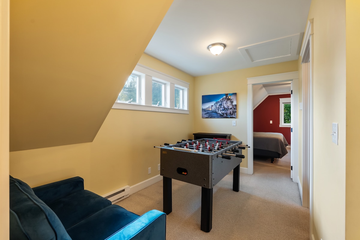 Teach Mór Cluthar & Stíl - Tearmann i Limistéar Coillte 15 nóiméad go Sliabh Schweitzer, 10 nóiméad go Sandpoint, tointeálaí sciála saor in aisce 3 nóiméad siúil Gnéithe: Aerchóiriú, seomraí cluichí, péint nua, troscán, fearais, agus éadaí leapa Uasteorainn: Codladh do 13, foirfe do theaghlaigh agus do chairde Atmaisféar: Athchóirithe le déanaí, suíomh suaimhneach coillte, foirfe do laethanta saoire sciála Nóta: Tá rianta traenach in aice láimhe, agus d'fhéadfadh go mbeadh roinnt torainn ann do dhaoine a bhfuil codladh éadrom acu. Tá gach rud againn duit le meaisíní torainn bháin agus plugaí cluaise chun go mbeidh do scíth shuaimhneach.