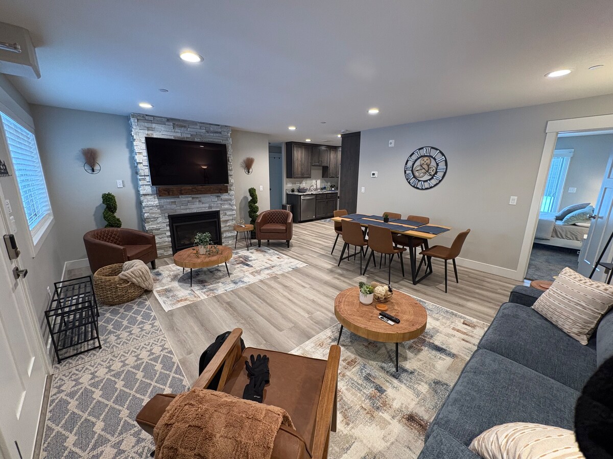 Tá Blue Rock Basecamp suite go háisiúil ag bun Raon Teton i nGleann Teton, Idaho. Táimid bloc amháin ar shiúl ó Downtown Victor le neart bialanna, beáir, agus deli/margadh le do riachtanais bhunúsacha go léir maidir le hearraí grósaera agus earraí. Tá an árasán 30 nóiméad go dtí Jackson Hole Mountain Resort, 35 nóiméad go lár Jackson, agus 30 nóiméad go dtí limistéar Sciála agus Áineasa Grand Targhee. Is é seo an basecamp foirfe do d'eachtraí sléibhe go léir; sciáil, rothaíocht, iascaireacht, raftú agus go leor eile!