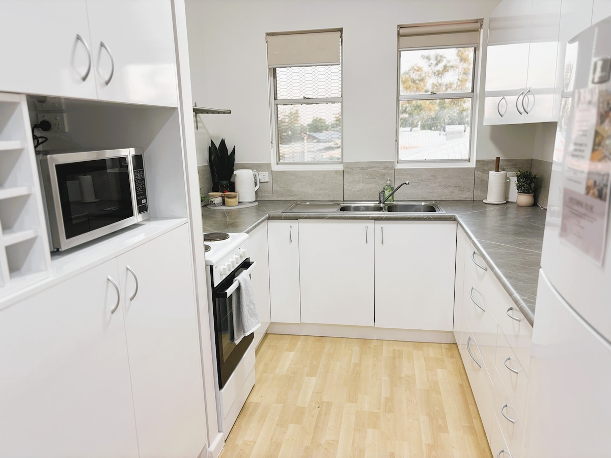 Só inacmhainne in South Hedland. Tá saoráidí agus compord den scoth ar fáil san árasán 2 sheomra leapa, 1 seomra folctha ar an 1ú hurlár seo a athchóiríodh le déanaí: - Lóistín suas le 6 aoi, le Leapacha móra i seomraí codlata agus (leaba thoilg dhúbailte) - Aerchóirithe go hiomlán - Feistithe go hiomlán le feistis ghalánta - Leaba leapa, tuáillí, caitheamh cistine agus earraí inchaite. - Wi - Fi ardluais - Cainéil dhigiteacha & sruthaithe ar theilifís mhór scáileáin chomhréidh - Níochán sa seomra An teach foirfe as baile, ar do chéad turas eile go dtí an tIarthuaisceart!