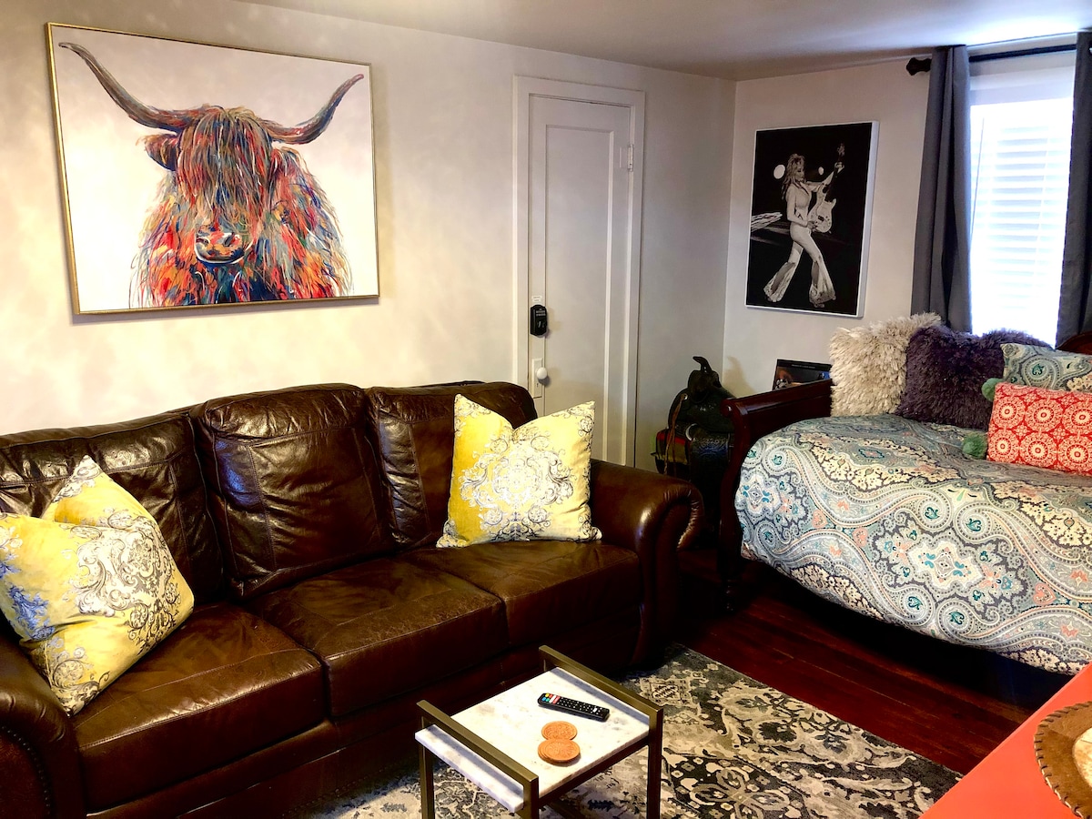 Teachín tuaithe le feistis adhmaid the agus leathair, seomra leapa mór amháin le cistin iomlán agus folcadán 3/4 ar an dara hurlár os cionn uasteorainneacha boghtach garáiste, radhairc iontacha ar an tír le crainn, suíomh an - chiúin agus suaimhneach, tagann an ghrian leis na fuinneoga ar maidin ag cruthú eispéireas múscailte teolaí (más mian leat) HVAC lárnach. Áit chónaithe nua agus bealach isteach príobháideach agus páirceáil láithreach don árasán. An bhfuil an mothú go bhfuil sé ar shiúl ón gcathair agus gan é ach 8 míle ó lár bhaile Amarillo.