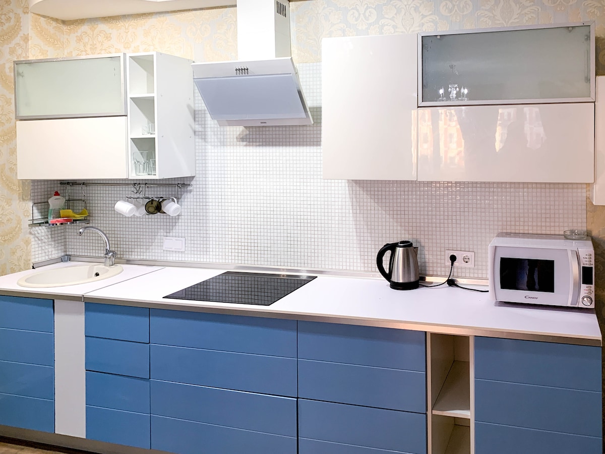 Relax in a deep soaking bath, sleep on a premium-quality mattress, read in a cozy armchair, or enjoy a glass of wine while watching the sunset from the 12th-floor window. This apartment is designed for comfort, calm, and functionality — ideal for both short and extended stays. You’ll have access to a fully equipped kitchen, fast Wi-Fi and a bicycle for exploring the area. Right across the street is a forest park — perfect for picnics, hiking and bike rides.