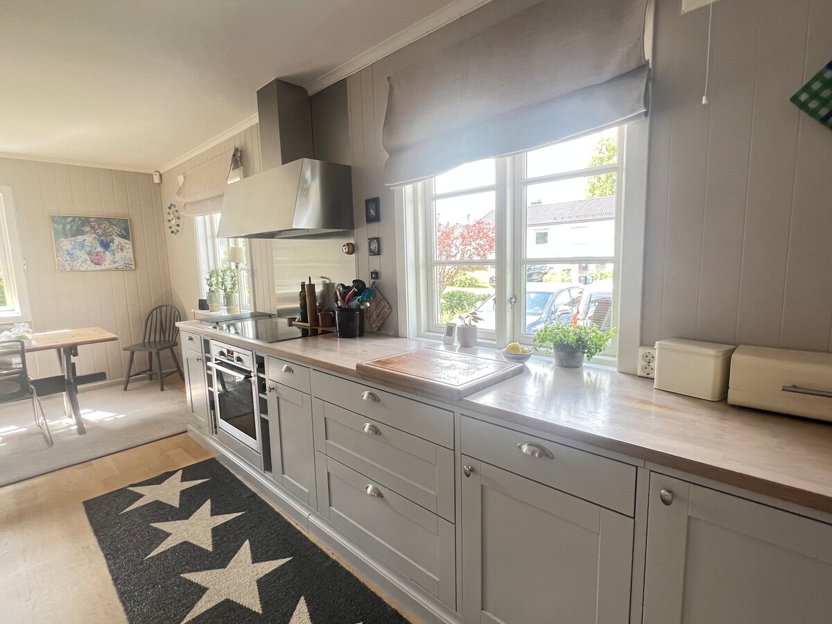 Nyrenovert og vakker enebolig med sentral beliggenhet. Hovedsoverom m/dobbeltseng, gjesterom m/dobbeltseng og barnerom med juniorseng og enkeltseng. Kjellerstue med sovesofa. Boligen holder høy standard og inneholder stor stue med kjøkken i åpen løsning og tre fullverdige bad. Rolig beliggenhet med ti min gange til sentrum. Oppvarmet svømmebasseng med motstrøms anlegg og skyvbart glasstak (gjør det mulig å bade når det regner). Er ikke huset ledig på ønskede datoer, ta gjerne kontakt.
