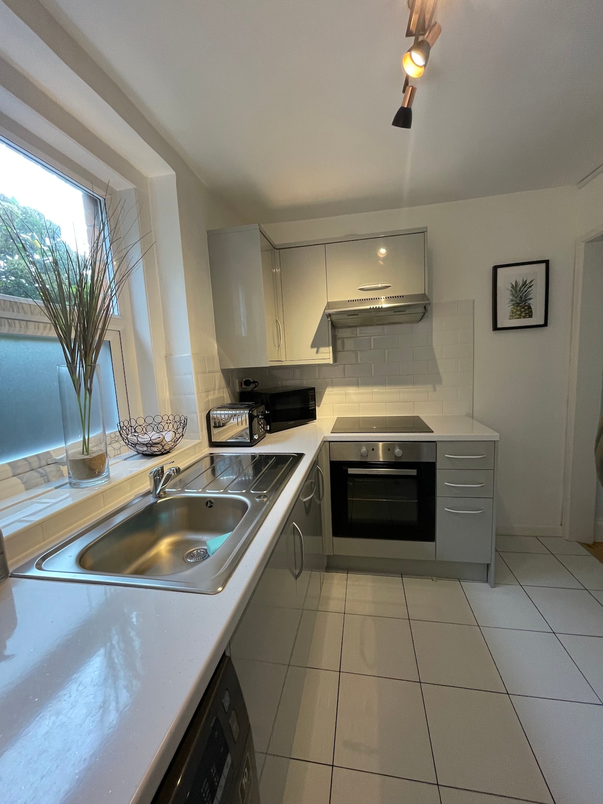 Táim ar bís an spás nua seo a chur ar fáil le haghaidh saoire iontach nó chun iniúchadh a dhéanamh ar áiteanna éagsúla. Tá Boscombe agus na ceantair máguaird thar a bheith álainn. Tá fáilte roimh chách seachas cóisirí toisc go bhfuil an bloc ciúin agus mí - oiriúnach. Díreach críochnaithe, maisithe go húr le cairpéad nua ar fud. Tugann fuinneoga móra atmaisféar éadrom do gach seomra atá ag breathnú amach ar ghairdíní glasa méithe gan aon réadmhaoin ag breathnú amach orthu. Na meáin Mhaighdean tar éis lá fada ag breathnú thart nó ag súgradh ar an trá. Luchtaire d'fheithiclí leictreacha ar fáil (tá táillí i bhfeidhm)