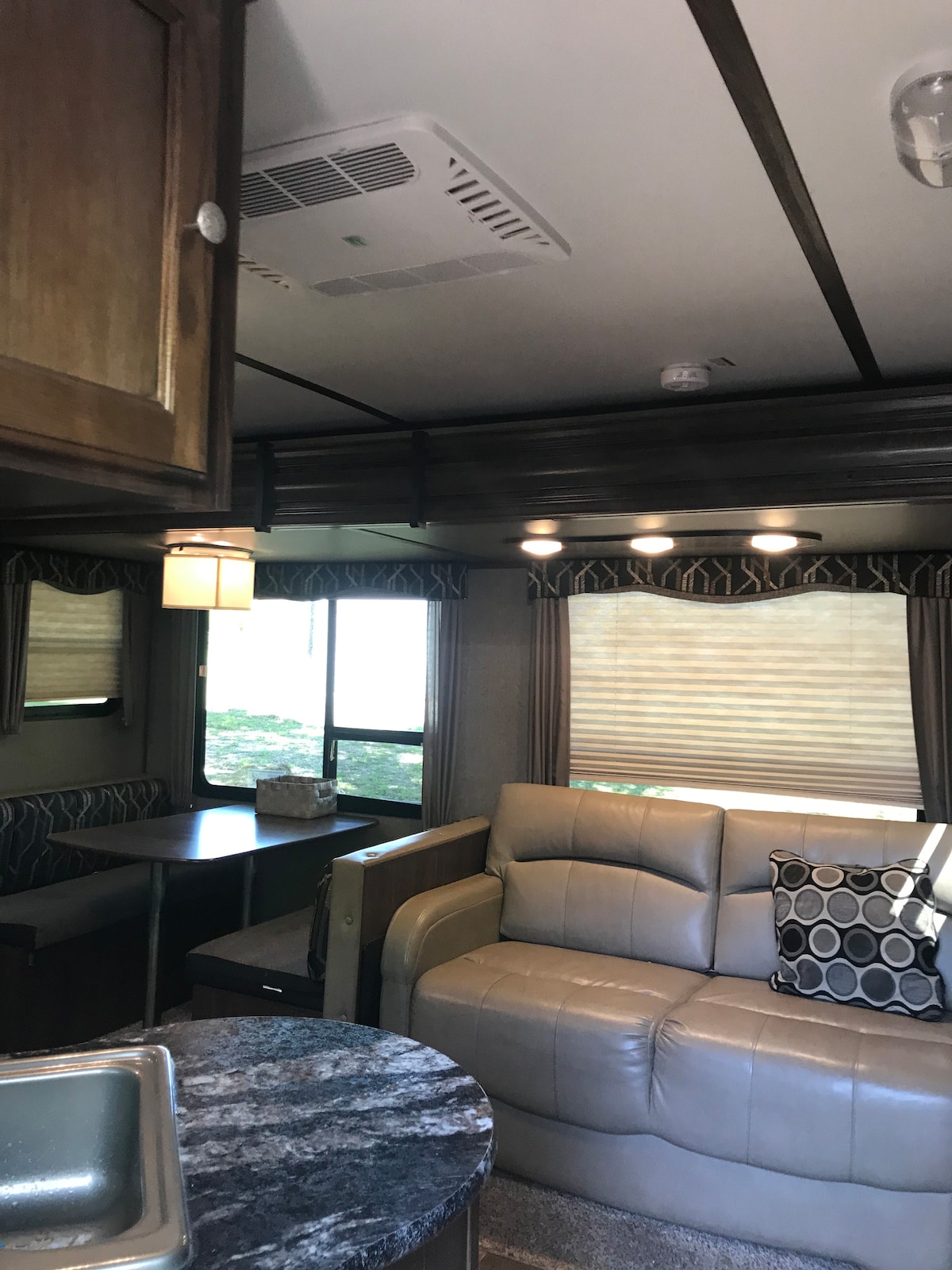 Is rogha éadrom foirfe é ár veain champála le folcadán fairsing cúil. Méadaíonn an Córas Ardaitheoir Leapa EZ nuálach do spás maireachtála, ag filleadh suas le haghaidh tolg agus síos le haghaidh leaba bhanríona. Tugann an chistin dinette both, cuntair dromchla soladach, dóirí móide oigheann, agus caibinéid éadain adhmaid ghloine duit. Go leor stórála faoin dinette agus sa seomra folctha. Cuir 2 chathaoir fhillte, Pit Dóiteáin Gáis, Polannaigh Fánaíochta agus Línéadaigh & tuáillí san áireamh. Ní dhéanfaidh tú dearmad ar d'am san áit rómánsúil, speisialta seo.